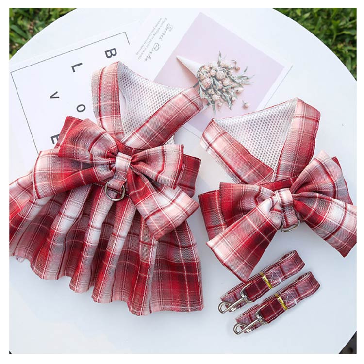 とてもおしゃれで可愛いハーネスリードセットです。ペットのお散歩も楽しくなりそう。リボン付き、おしゃれなチェックワンピースです。小型犬、中型犬、猫、ウサギなど小さなペット用ペットウエアです。軽量で通気性良くワンちゃんも快適につけられます。普段のお散歩から旅行、いつも一緒にいられる必須アイテムです。装着簡単でお散歩やお出かけ準備出来、写真撮影などにもおすすめです。