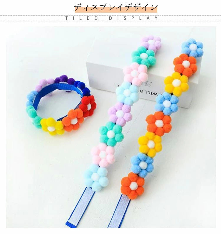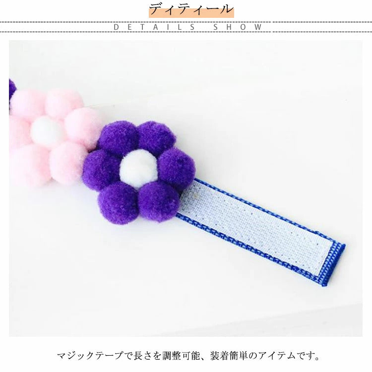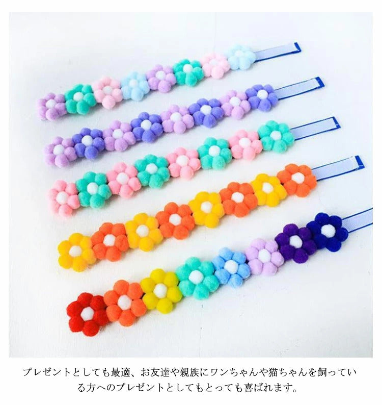 かわいいポンポン花!犬 首輪 猫 かわいい 小型犬 中型犬 おしゃれ ペット用カラー うさぎ お出掛け お散歩 ペット用品 ペットグッズ お花 カラフル 愛犬 愛猫