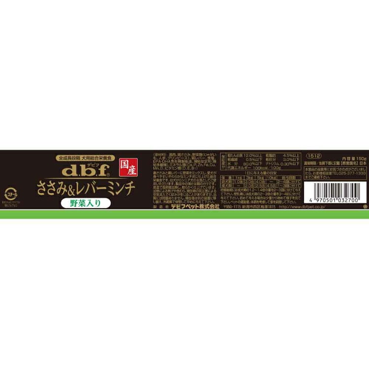 (検索用:デビフ・d.b.f・犬・いぬ・ドッグフード・ウェット・総合栄養食・缶・国産・着色料無添加・全成長段階・鶏レバー・4970501032700)