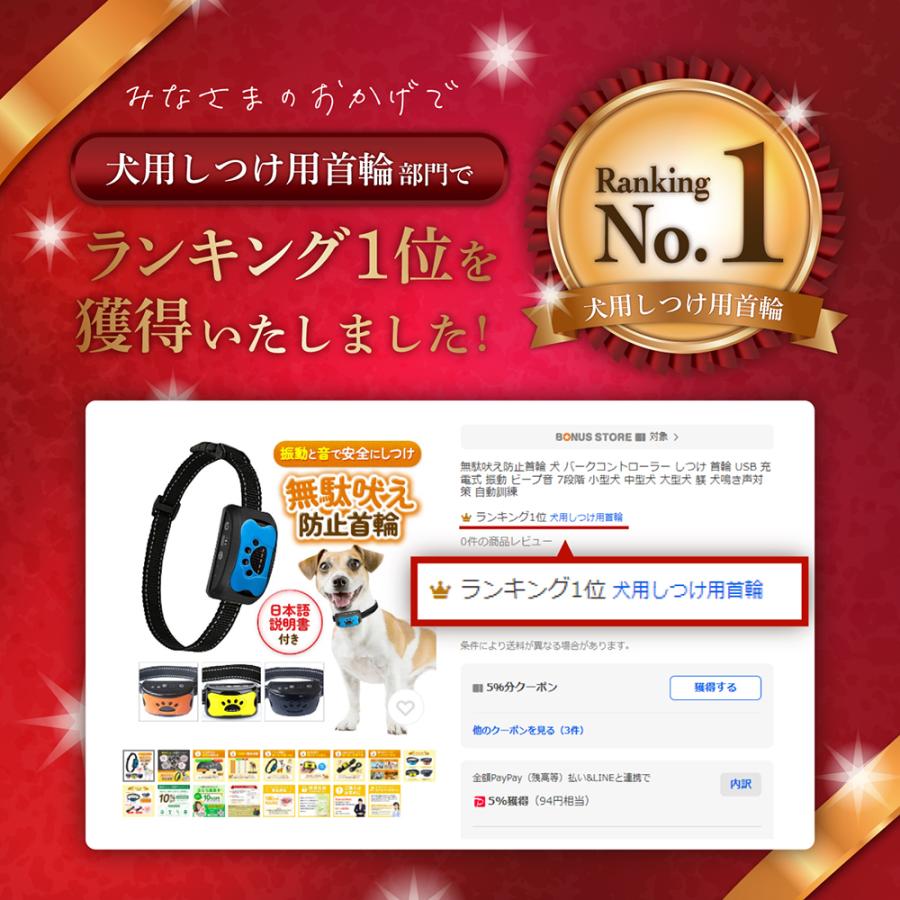 無駄吠え防止しつけ用首輪です 振動 ビープ音 7段階