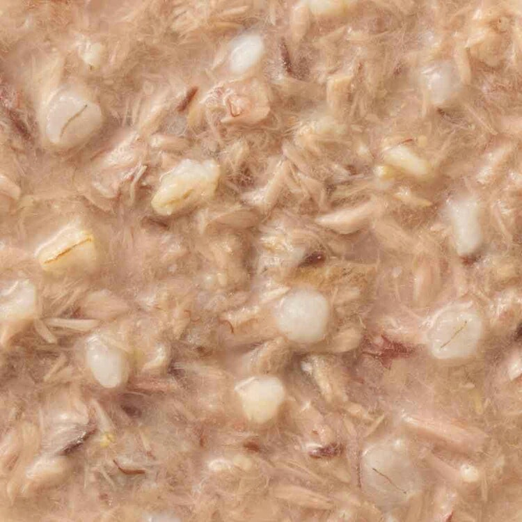 まぐろ、六穀類(米粒麦、もち麦、オーツ麦、もちきび、もちあわ、うるちひえ)、タピオカでん粉