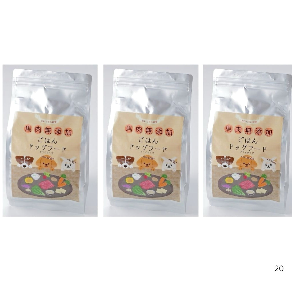 わんちゃん食堂 馬肉 犬用 完全 無添加 ごはん ドックフード 1キロ×3袋 成犬 シニア ダイエット フード 日本製 ヒューマングレード アレルギー 全犬種 全年齢 パッケージ変更あり