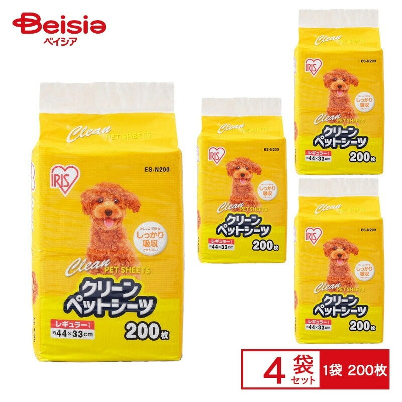 アイリスオーヤマ クリーンペットシーツ レギュラー200枚 ES-N200 ×4セット(1ケース) ペットシーツ レギュラー 200枚 まとめ買い 4セット 犬 猫トイレ 下敷きシート 1ケース