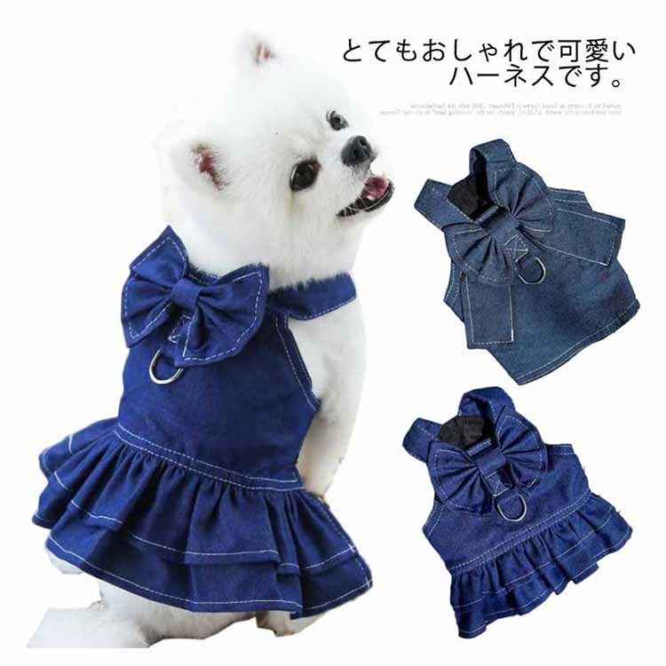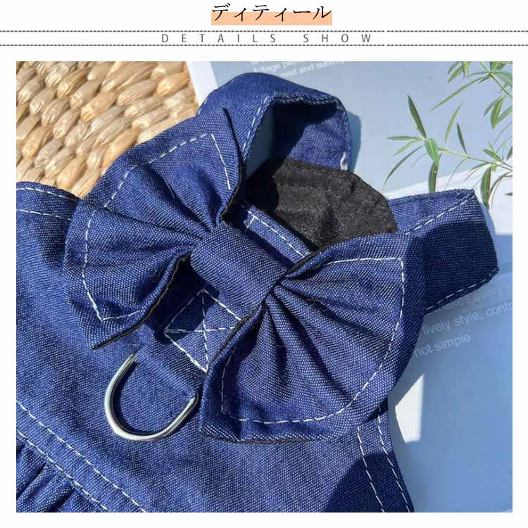 インスタ映え ハーネス 犬 胴輪 小型犬 中型犬 犬服 猫用 犬 抜けない デニムハーネス ワンピース おしゃれ かわいい ウェアハーネス 春 夏 負担が少ない 迷子防止 女の子 男の子 かわいい X