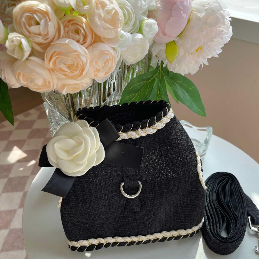 ブラックベースのツイードデザインでカメリアの飾りも付属しています。