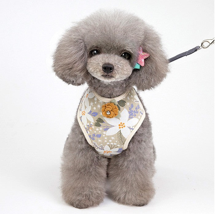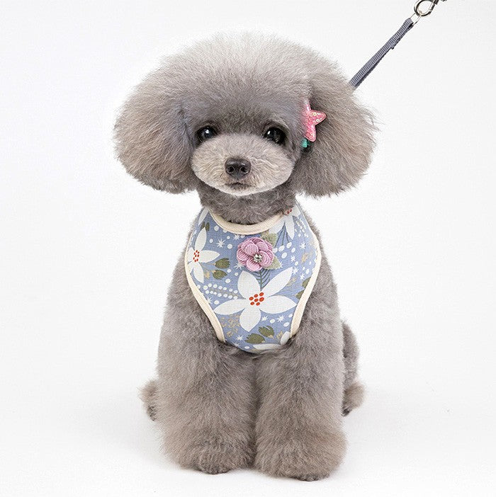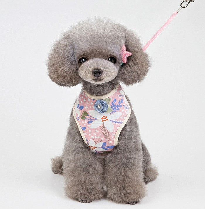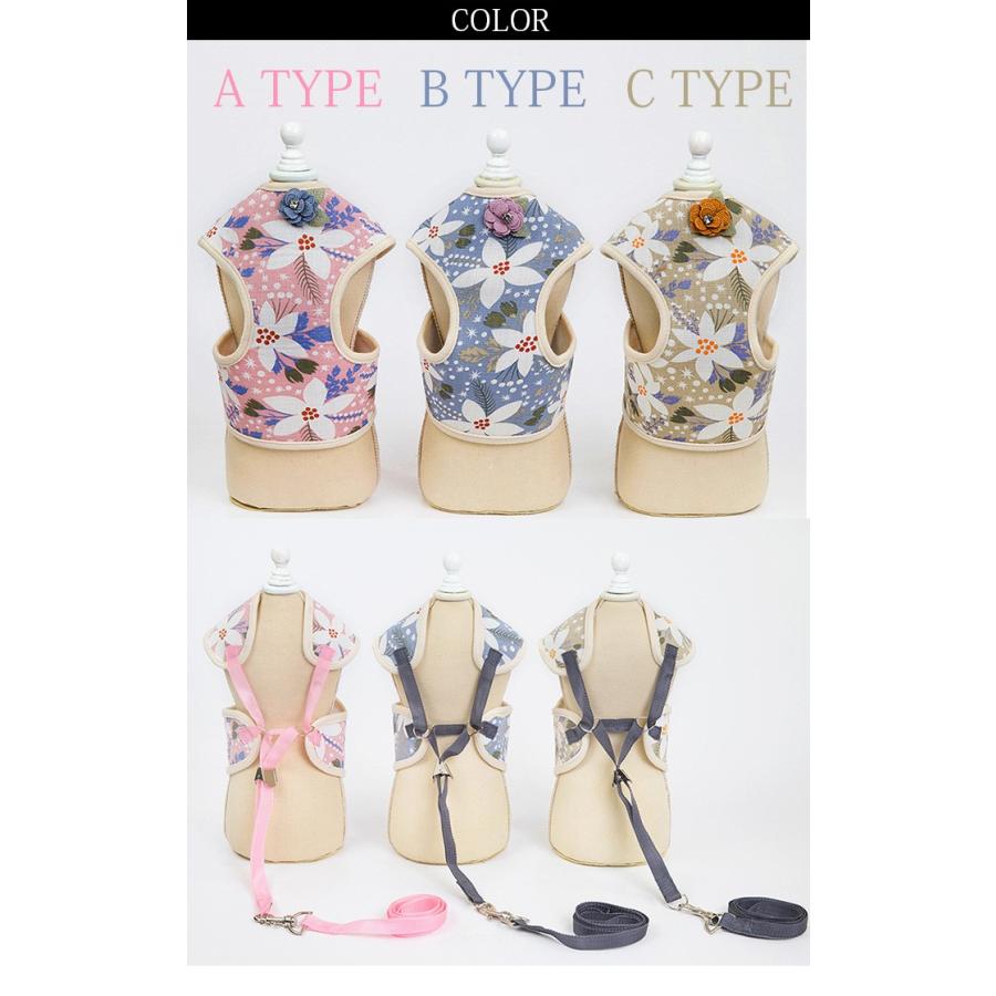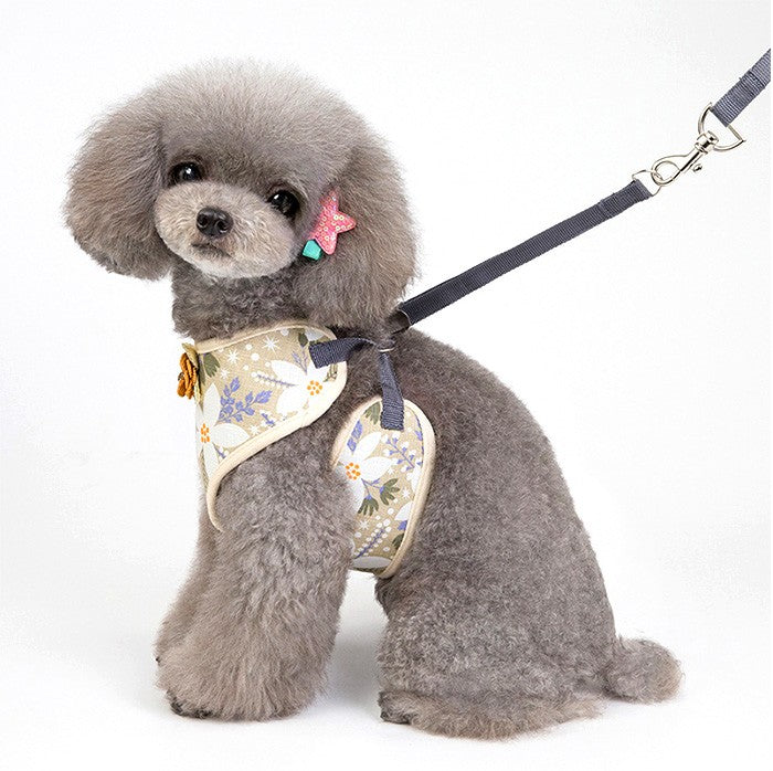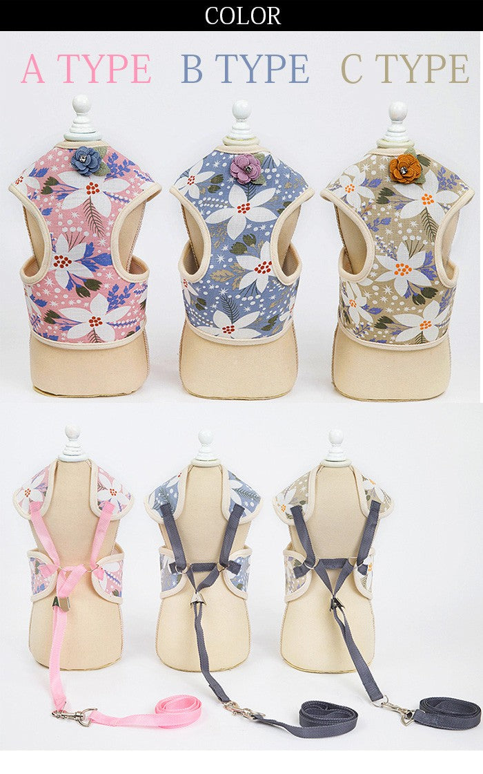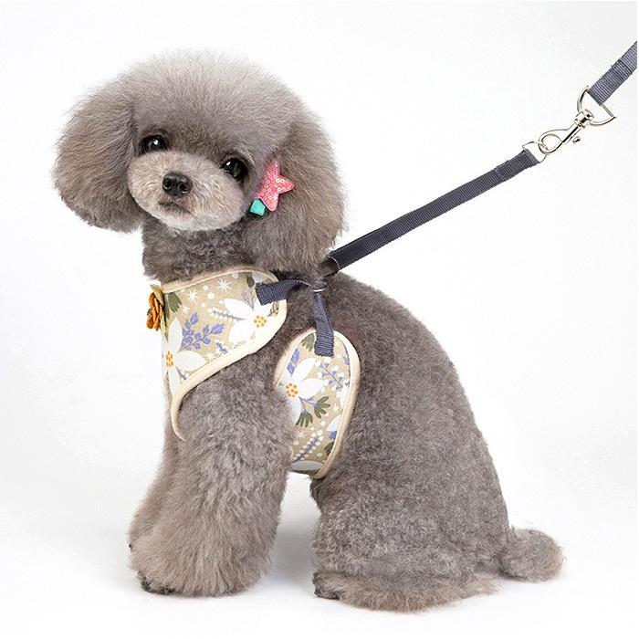 フラワーデザインが可愛いネコちゃんとワンちゃん用ハーネスとリードのセット☆