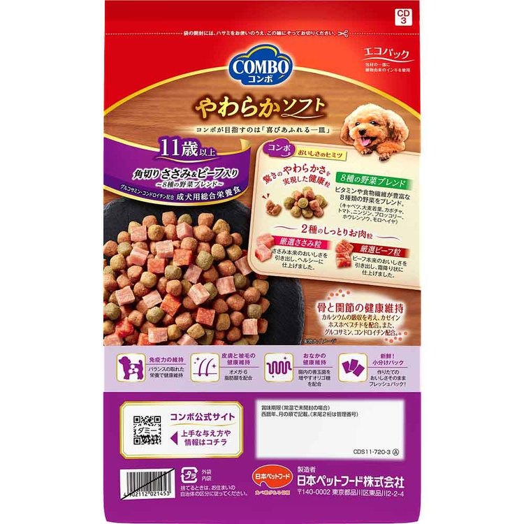 コンボドッグやわらかソフト11歳以上角切りささみ・ビーフ野菜ブレンド720g 1011176 日本ペットフード株式会社
