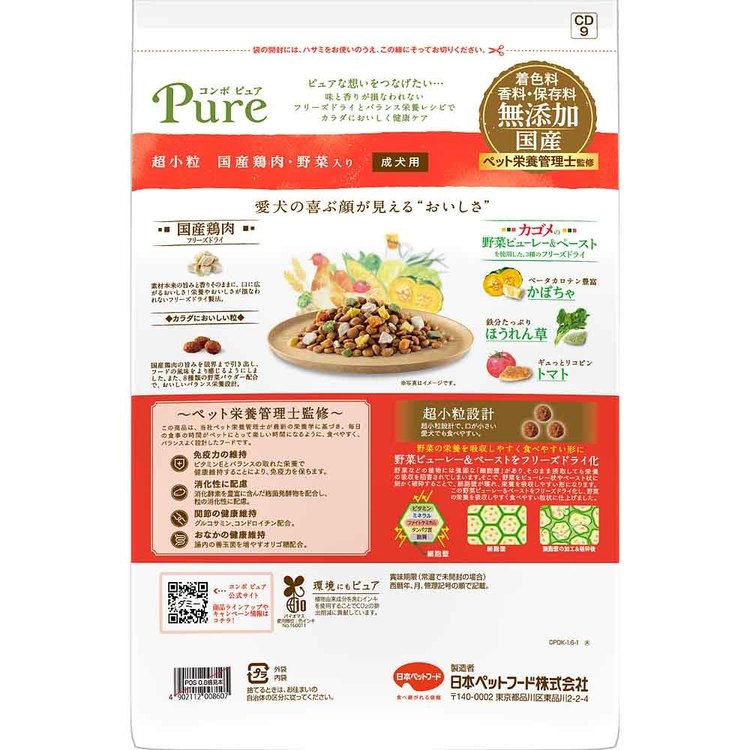 (検索用:日本ペットフード・国産・ドッグフード・着色料無添加・香料無添加・保存料無添加・フリーズドライ・カゴメ・総合栄養食・小分け・4902112008607)