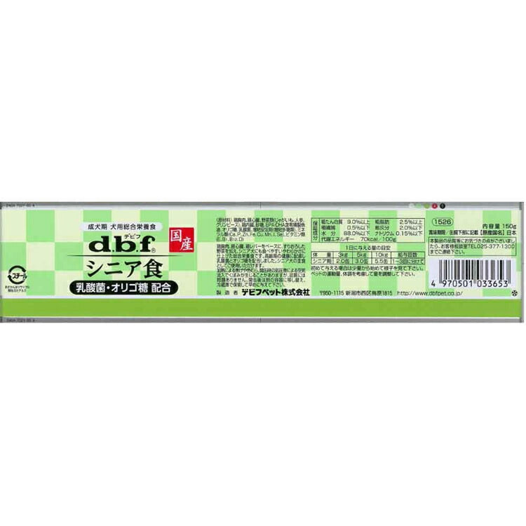 シニア食 乳酸菌・オリゴ糖配合 150g 1526 デビフペット