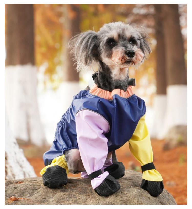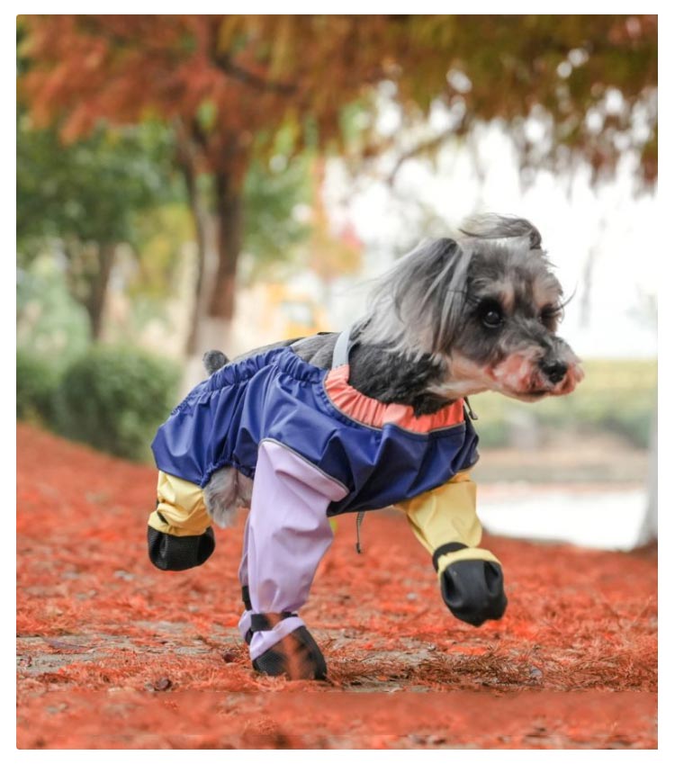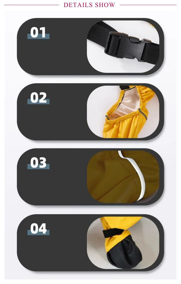 タイムセール サスペンダー付き防水犬用ブーツ 犬用レッグカバー 防水 犬用レッグカバー 滑り止め 脱げない 調節可能 レインパンツ 犬 レインコート 犬服 サスペンダー付き 屋外四本足パンツ 犬用シュ