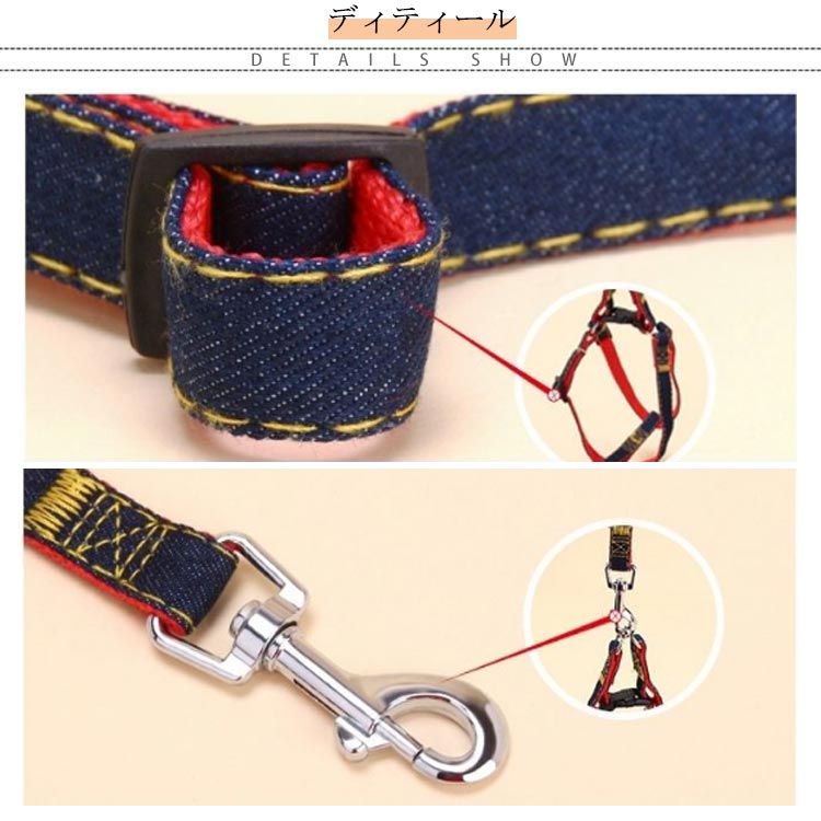 調整可能、丈夫なデニムハーネス、リード、首輪3点セットです。 ペットのお散歩も楽しくなりそう。 小型犬と中型犬、小さなペット用ペットウエアです。 軽量で通気性良くワンちゃんも快適につけられます。 普段のお散歩から旅行、いつも一緒にいられる必須アイテムです。 装着簡単でお散歩やお出かけ準備出来ます。 | |