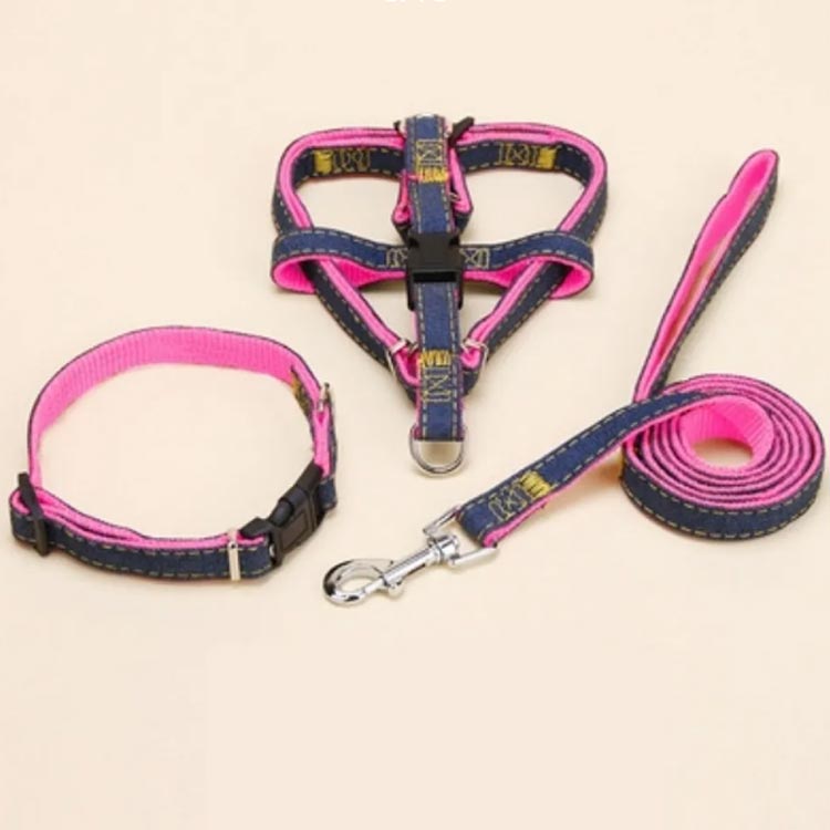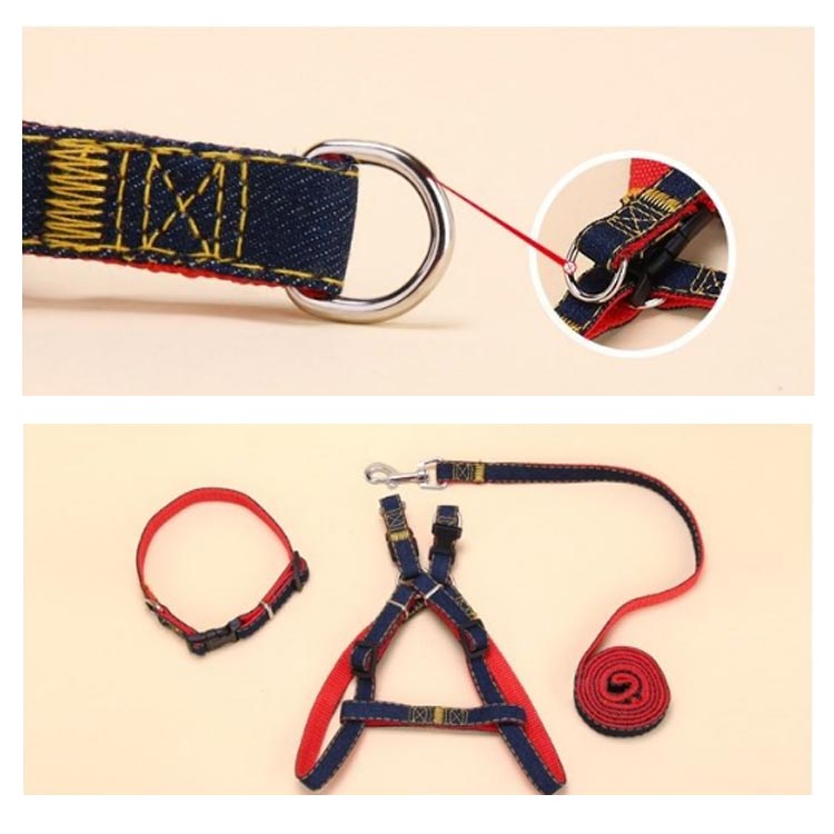 デニム ハーネスリード 3点セット ハーネスリードセット 胴輪 ハーネス リード 犬 ドッグ 小型犬 犬用 ペット用 犬具 散歩 お出かけ 簡単装着 4色
