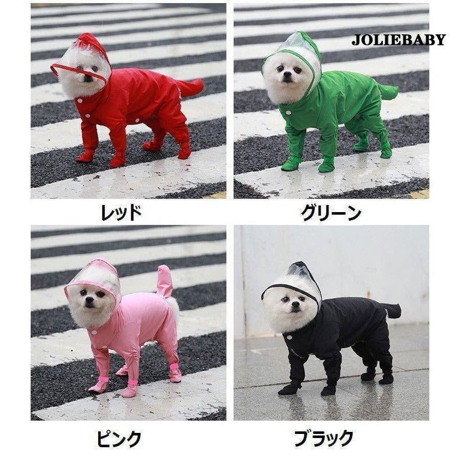 ドッグウェア ペットウェア レインコート つなぎタイプ ジャンプスーツ ペット用品 袖あり 前開き スナップボ 足カバー付き 雨具 犬の服 犬服 洋服