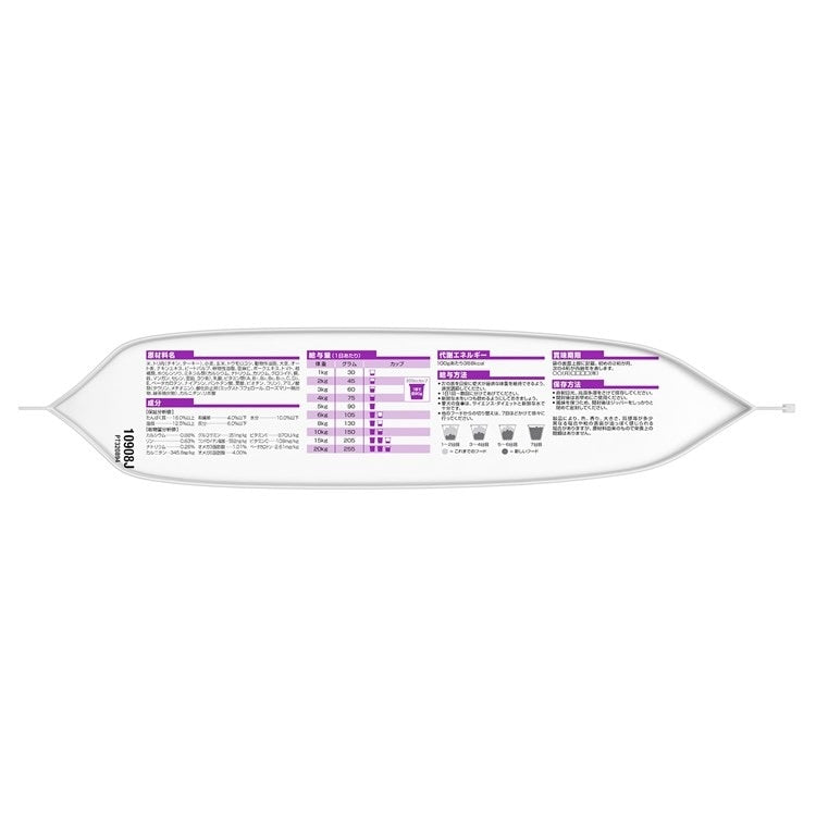 給与量 | 1kg30g、2kg45g、3kg60g、4kg75g、5kg90g、6kg105g、8kg130g、10kg150g、15kg205g、20kg255g、25kg300g、30kg340g、40kg425g、50kg500g (200ccカップ1杯で約90g) |