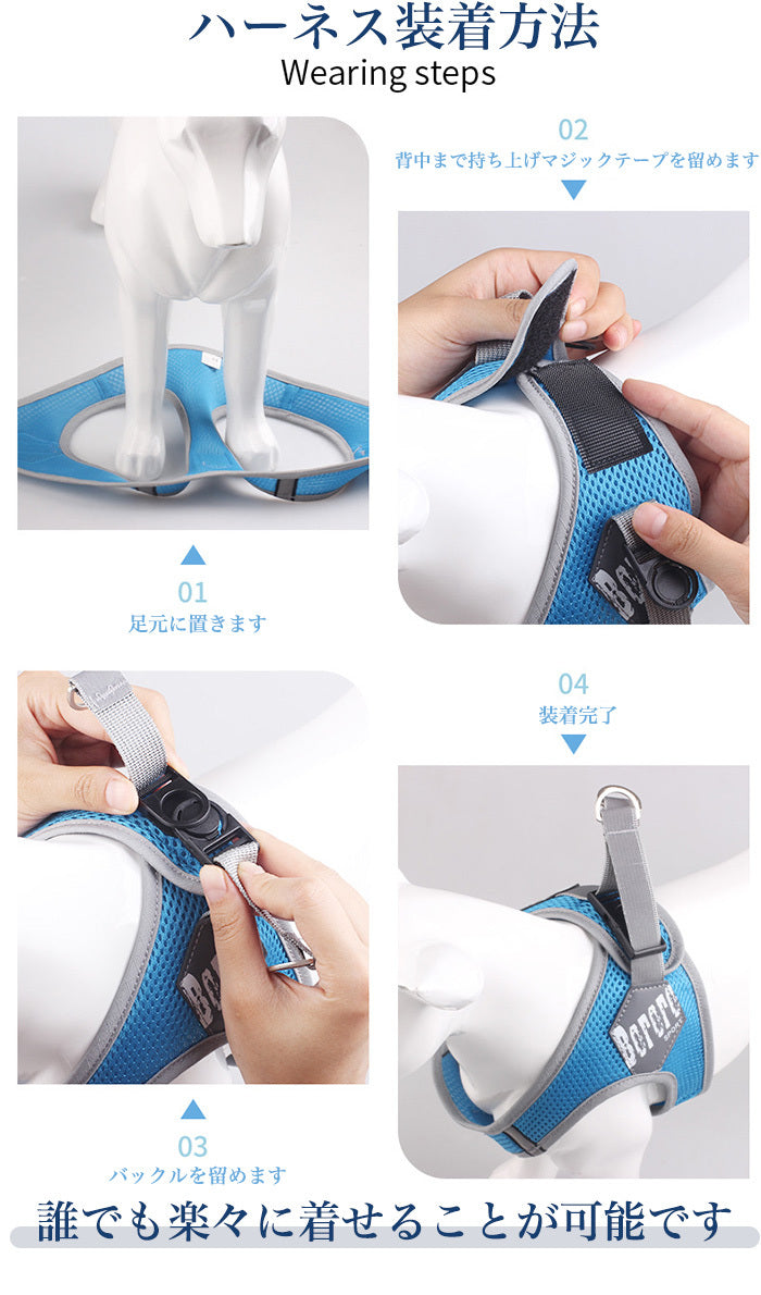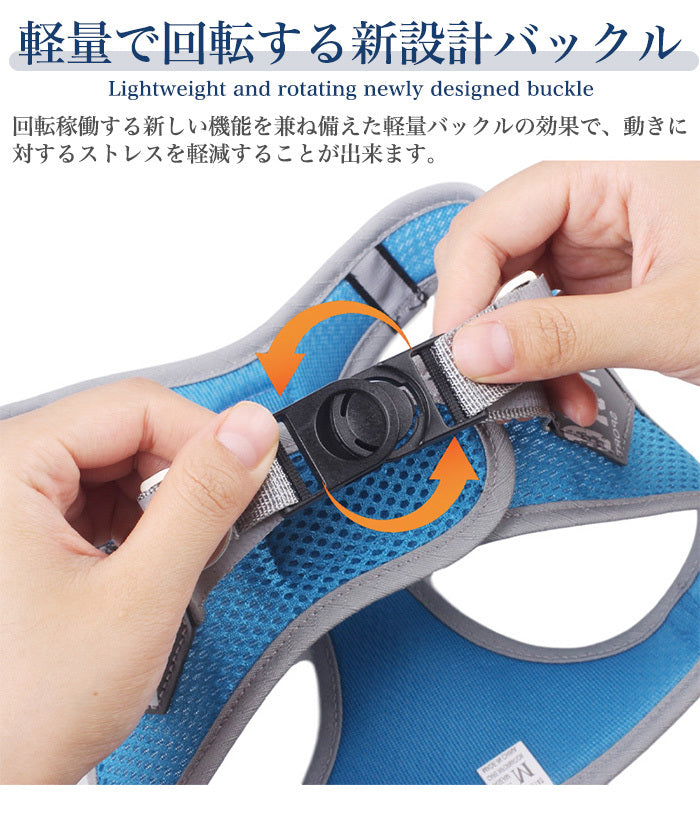 気管への負担が少ない機能的なハーネス!メッシュ素材でソフトな肌さわり!