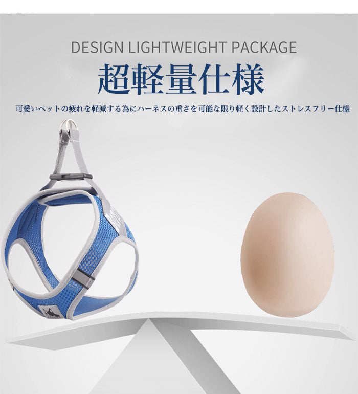 可愛いペットの疲れを軽減する為、ハーネスの重さを可能な限り軽く設計したストレスフリー仕様。