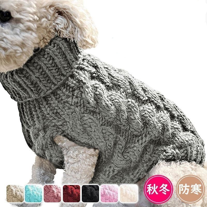 ニット タートルネック ドッグウェア 暖か 犬服 秋冬 保温 防寒 セーター ケーブル編 伸縮性 猫 旅行 お散歩