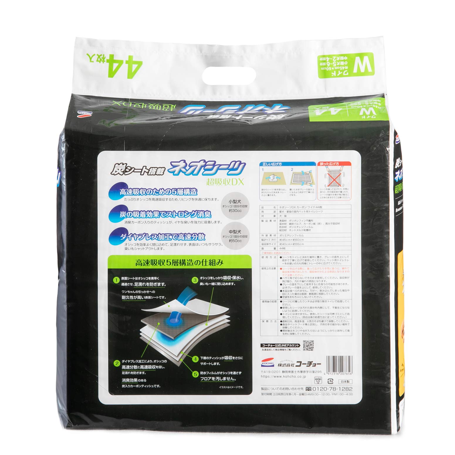 ネオ・ルーライフ ネオシーツ カーボン DX ペットシーツ ワイド 44枚入×4袋 全176枚 (ケース販売)
