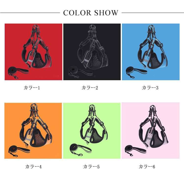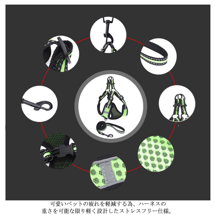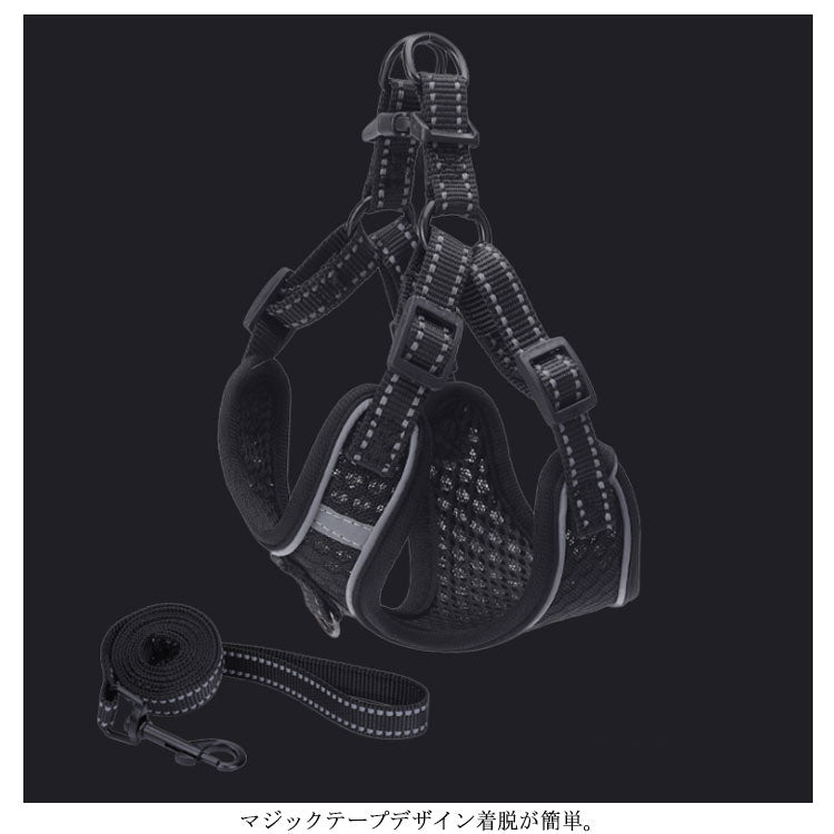 ハーネスリードセット 犬 ハーネス 小型犬 中型犬 大型犬 犬 ウェアハーネス 胴輪 キャット ドッグ ペット トレーニング ペット用品 お散歩 しつけ リード 引っ張り 防止 メッシュ 装着しやすい