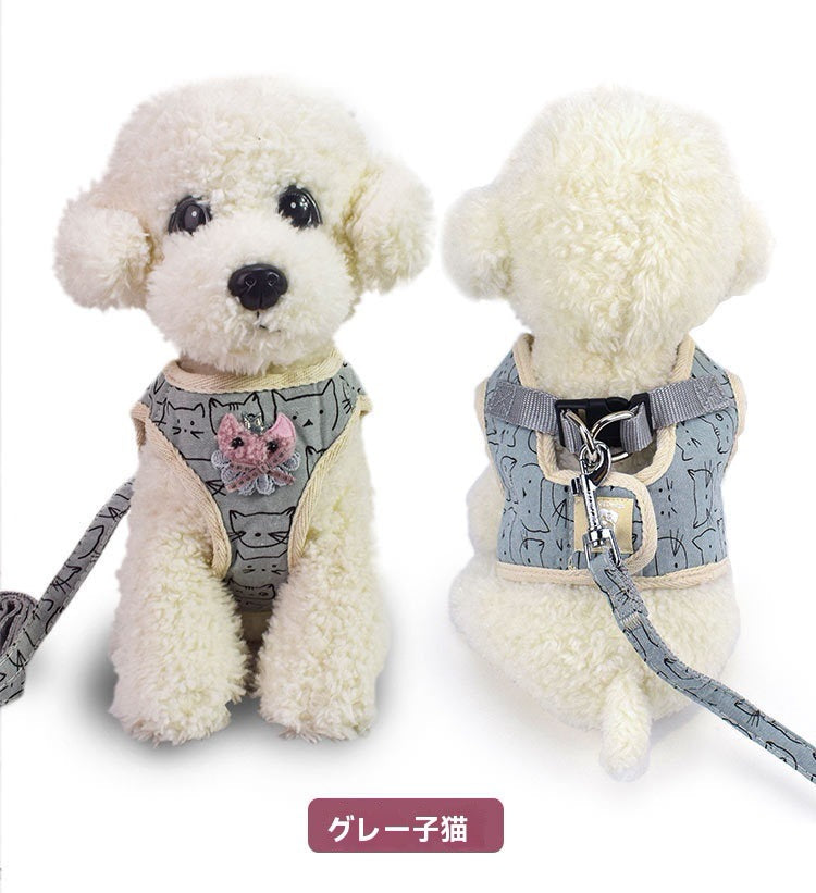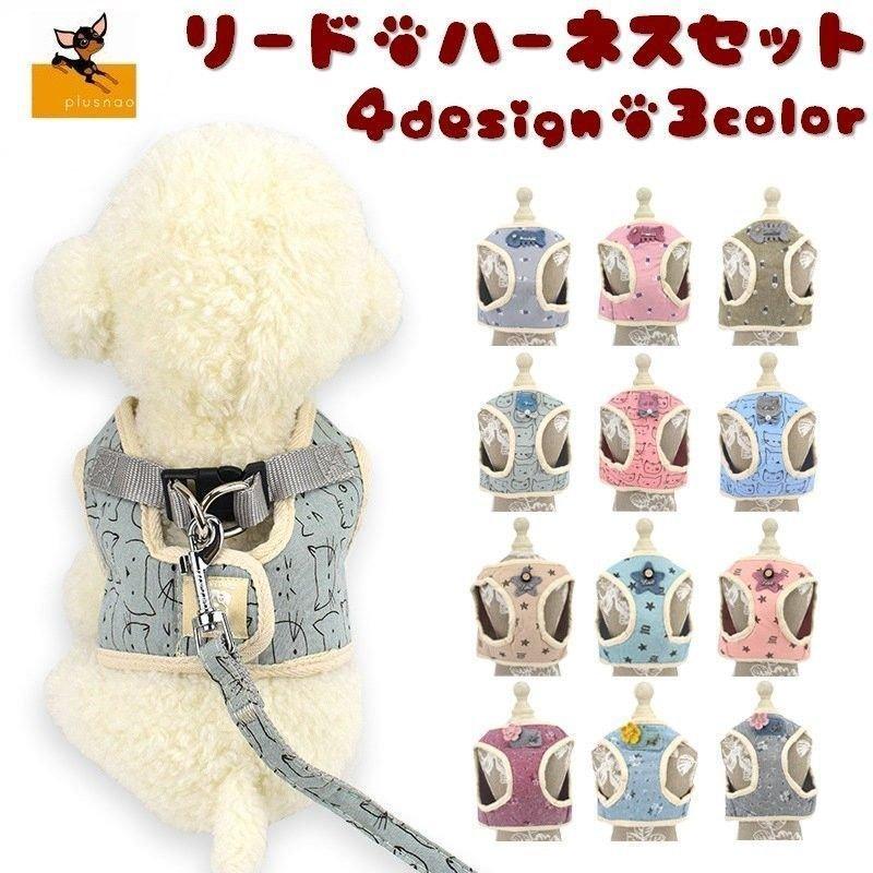 ハーネスリードセット2点セット犬用猫用胴輪ハーネスリード散歩紐お散歩グッズ簡単装着メッシュベスト胸当てペット用おしゃれか