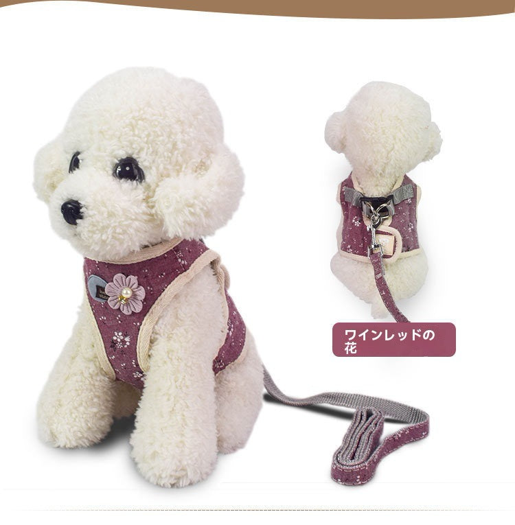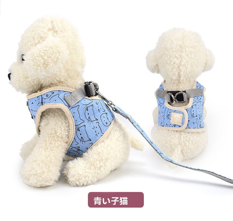 かわいい柄のペット用ハーネス&リードの2点セット。