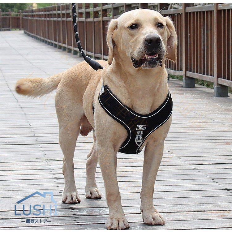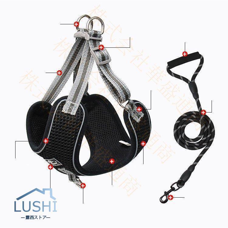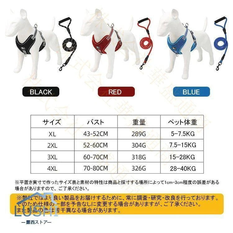 ハーネス リード 犬用 中型犬 大型犬ベスト ペット 通気性 リード ハーネスセット ドッグラン お散歩 ベスト型 リボン 胴輪 脱着簡単 衝撃吸収 外出 お洒落 安全