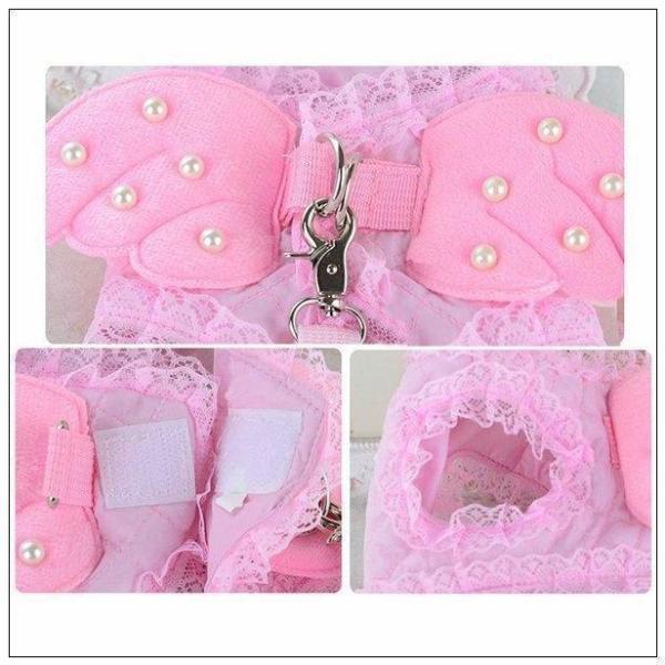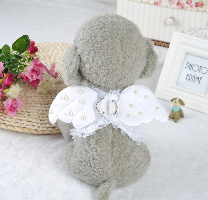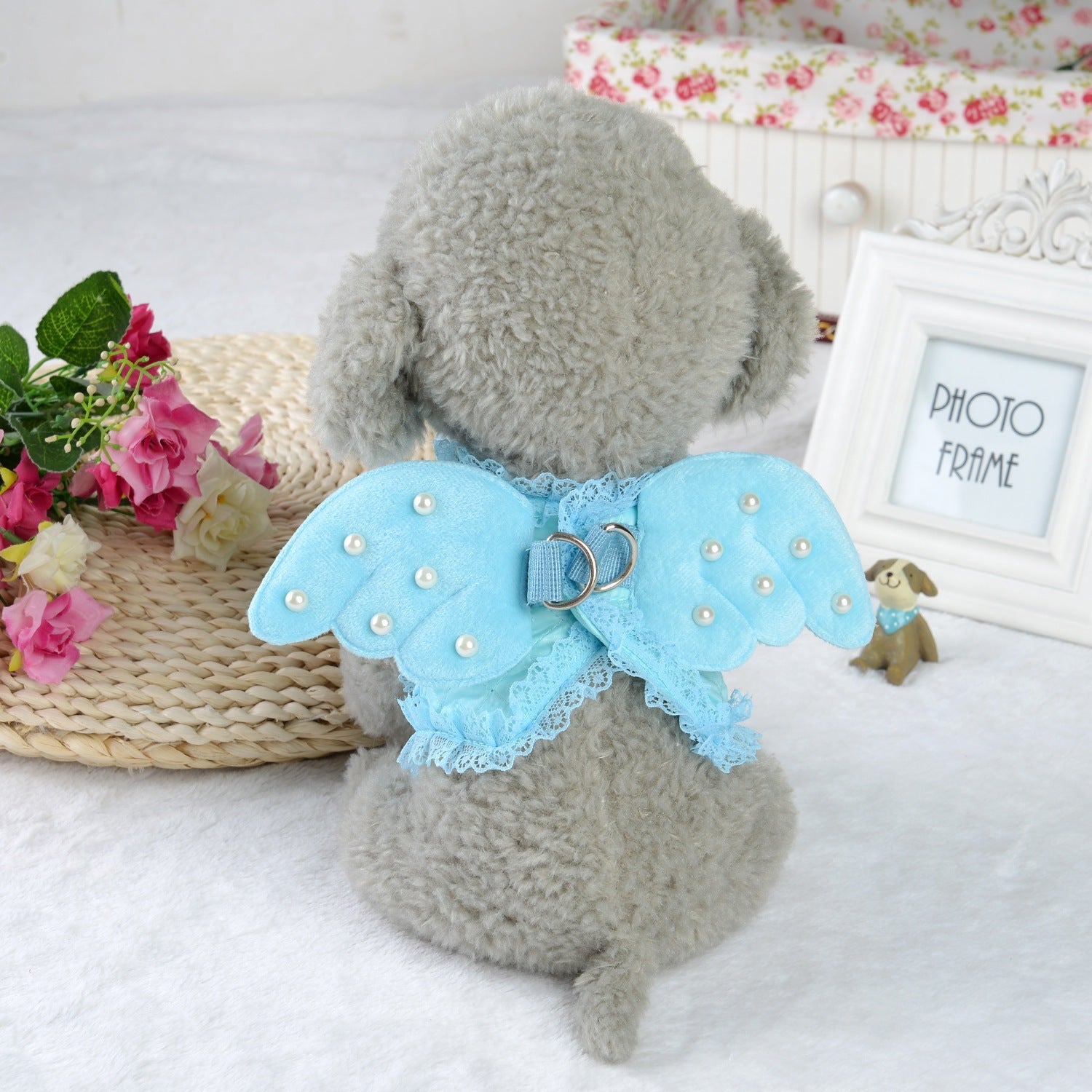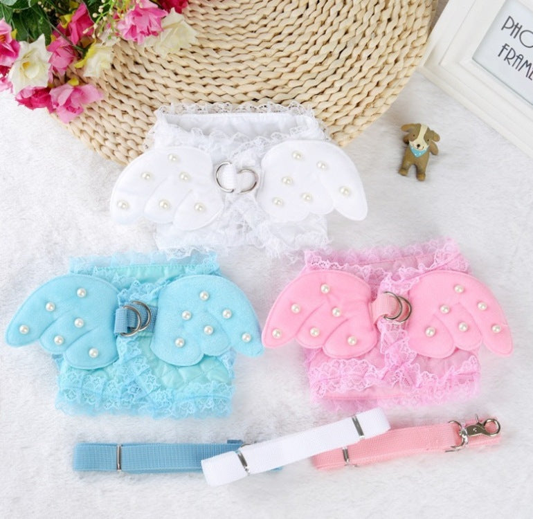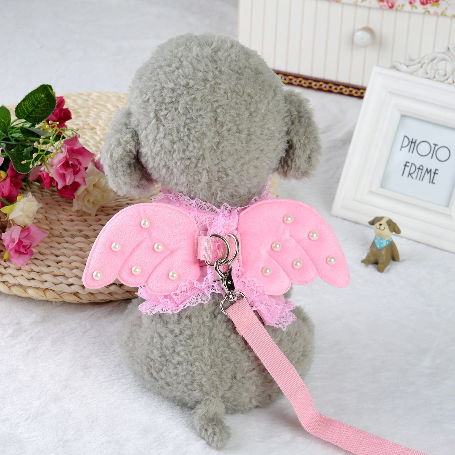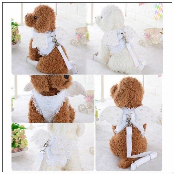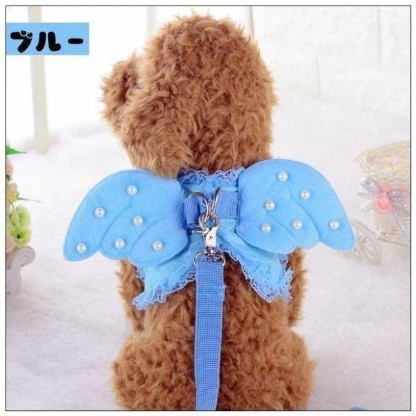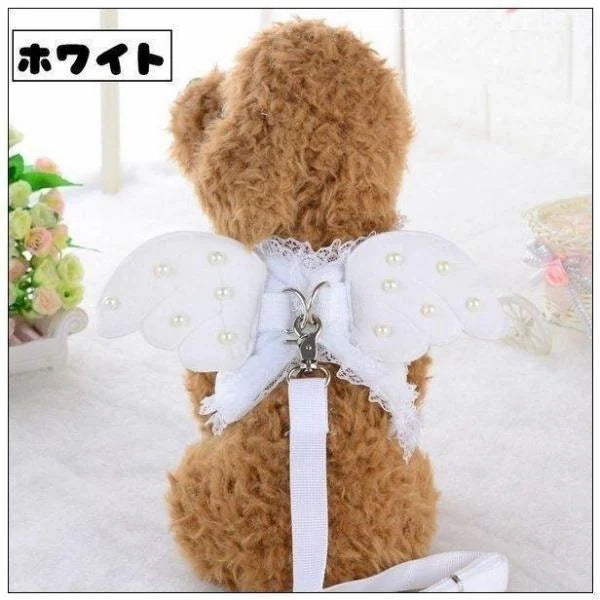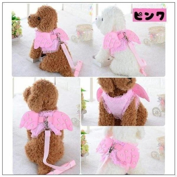 ハーネス リード 2点セット 犬用 ペット用 胴輪 リーシュ 胸当て ベスト お散歩グッズ 天使 羽根 エンジェル リボン メッシュ 小型犬 小型犬