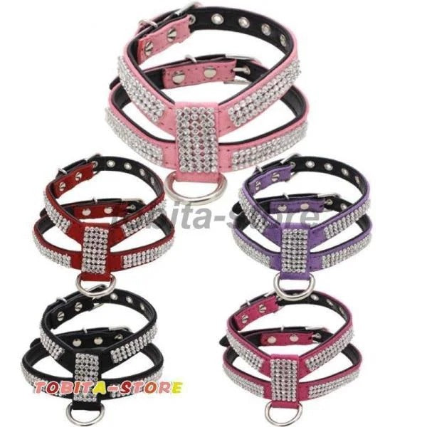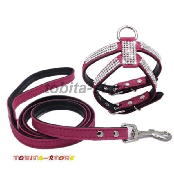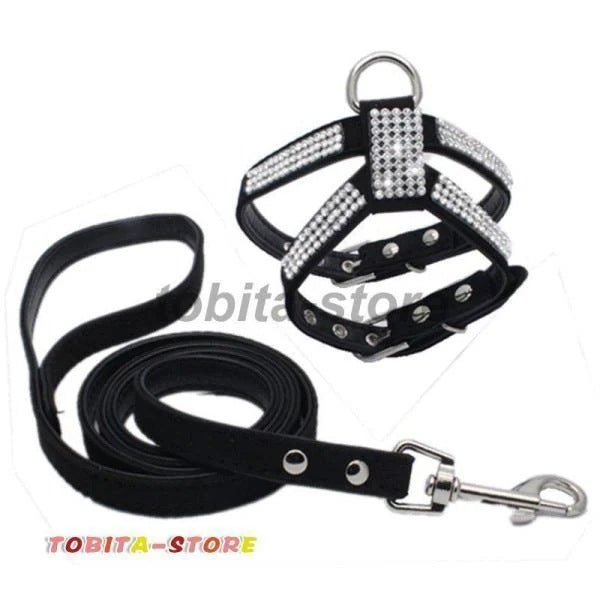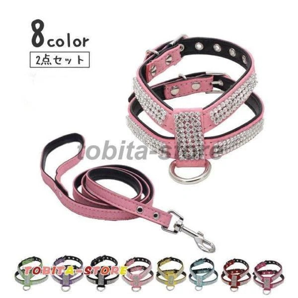 ラインストーンで装飾されたハーネスとリードの2点セット