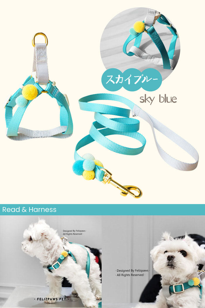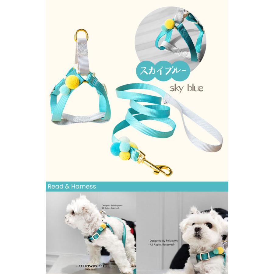 ペット 犬 イヌ 犬用 ドッグ リード付き リードハーネス ハーネスリード おしゃれ 胴輪 リード 可愛い かわいい ぽんぽん 簡単着脱 調整可能 散歩 ファッション