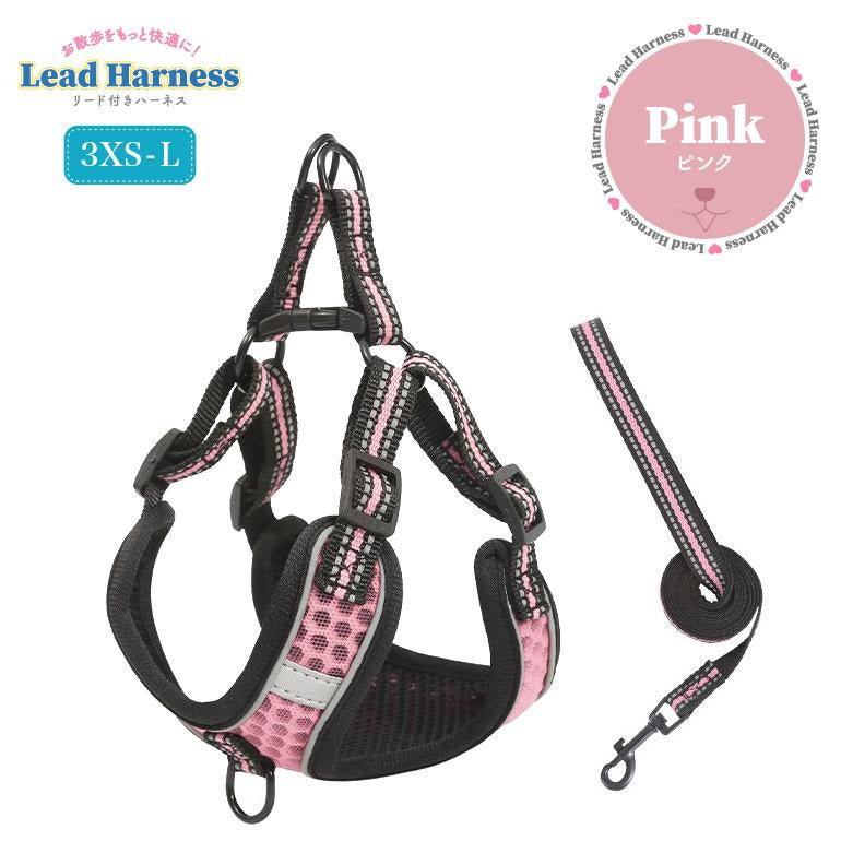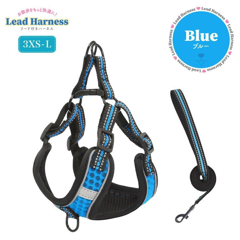 ハーネス 犬 リードセット 小型犬 中型犬 かわいい おしゃれ 犬用 猫用 新作登場 イヌ ドッグ いぬ ネコ 反射機能付き 軽量 負担が少ない メッシュ 抜けにくい