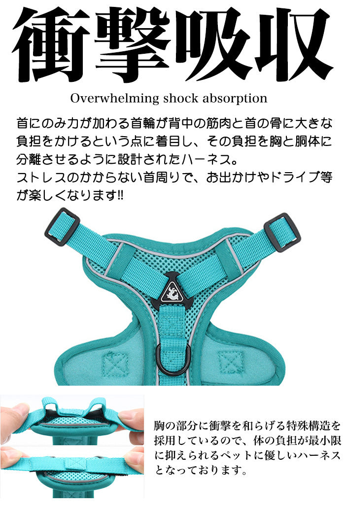 胸の部分に衝撃を和らげる特殊構造を採用しているので、体の負担が最小限に抑えられるペットに優しいハーネス。