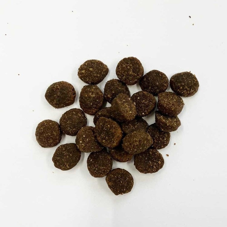 ダックミール、バーバンクポテト、ノーコタポテト、かぼちゃ、鶏脂肪*(保存用に混合トコフェロールを使用)、ビール酵母、塩化カリウム、塩化コリオン