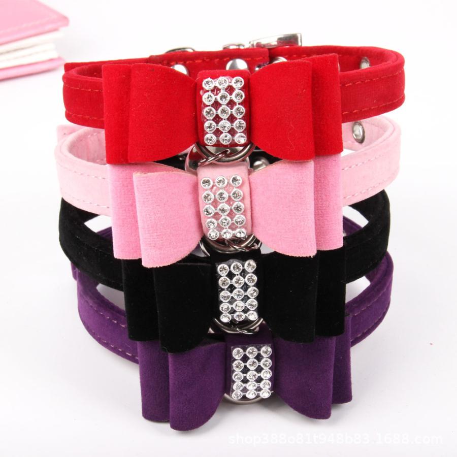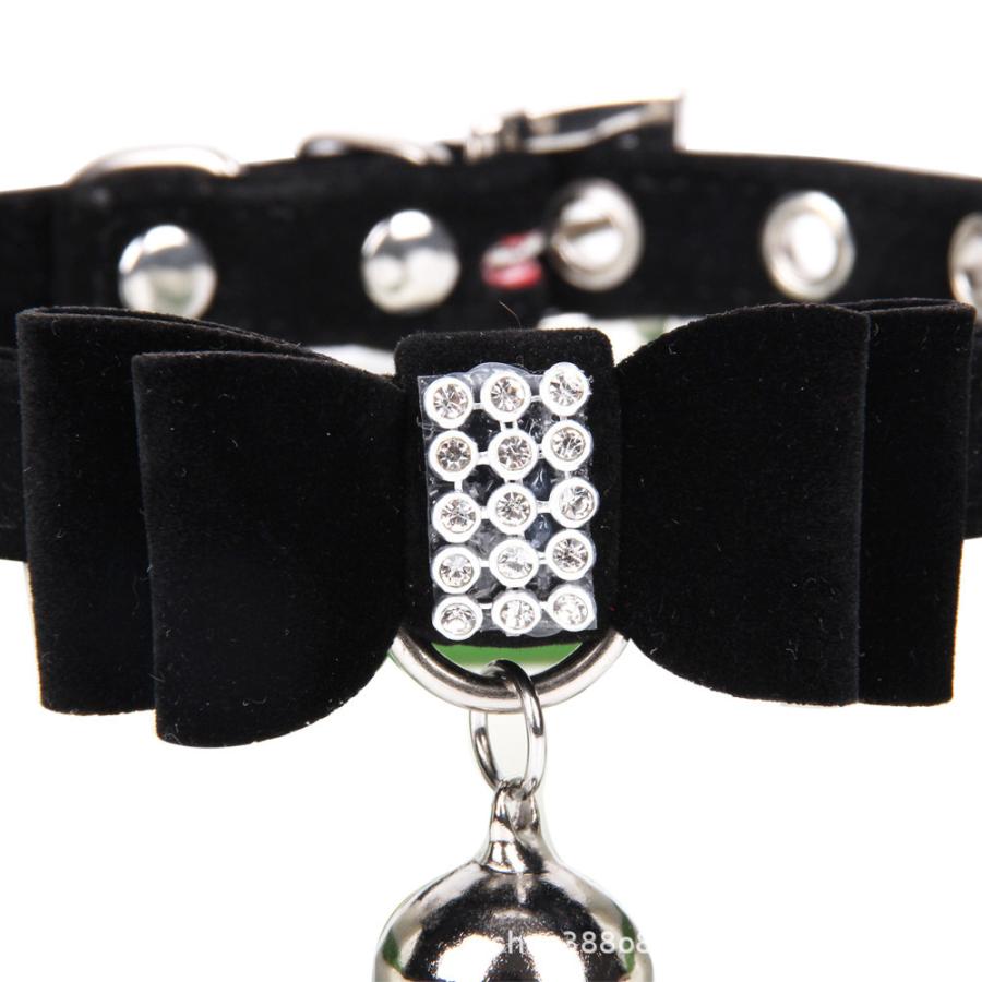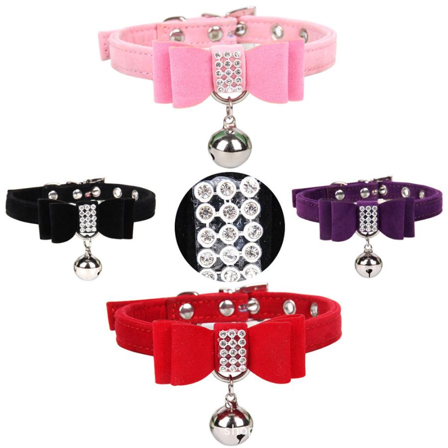 ベロア調 犬 ビジュー 可愛い 蝶ネクタイ 首輪 お散歩グッズ リボン ペット用品 鈴 カラー ラインストーン 猫 サイズ調節可能