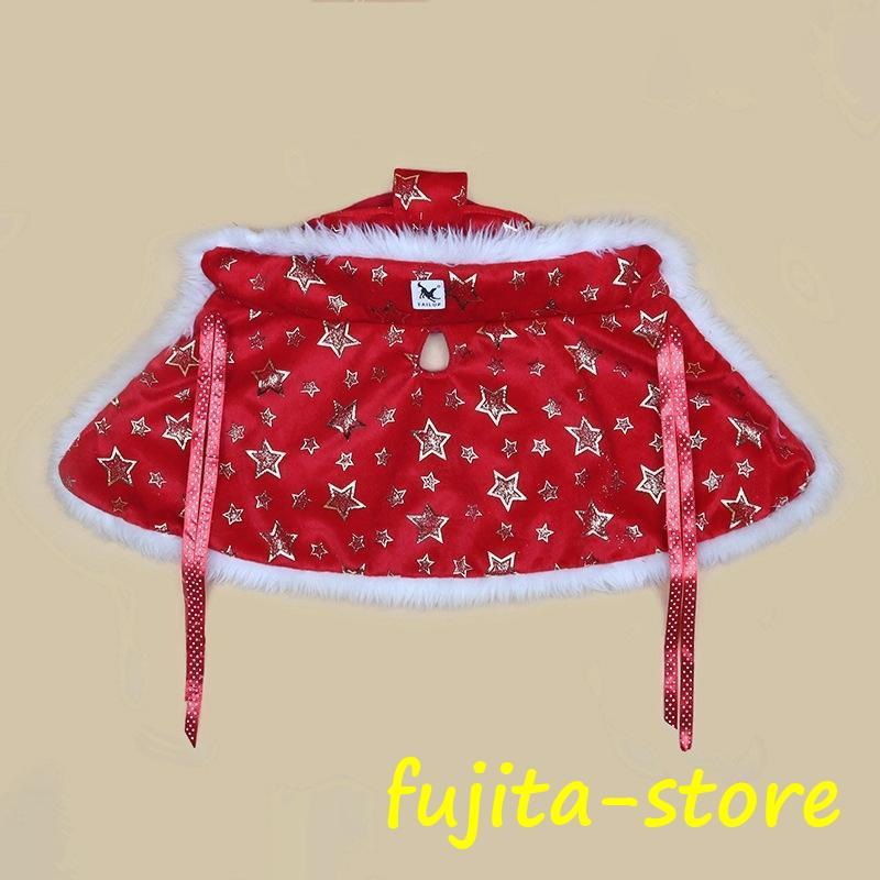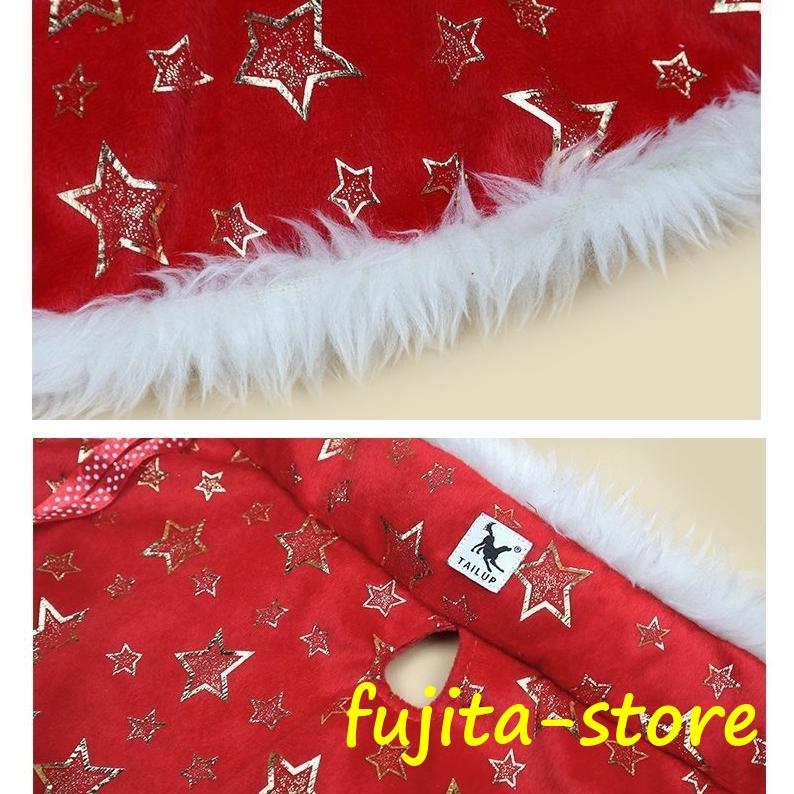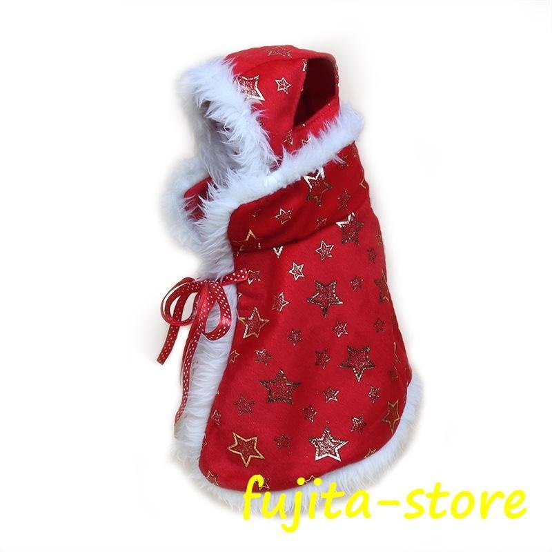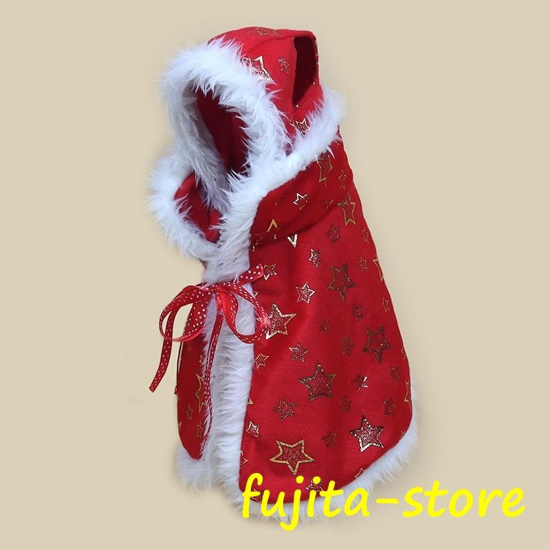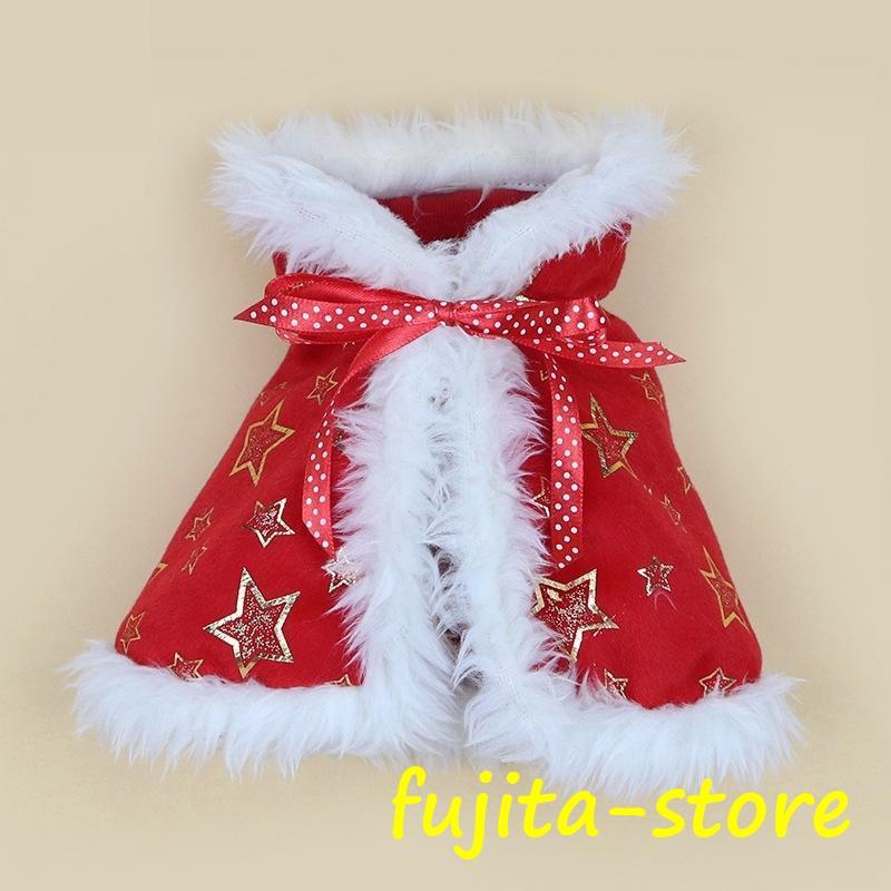 ペットウェア コート ドッグ キャット ポンチョ フード付き 耳出し リード穴 裏起毛 ボア マント 星柄 ファー サンタ クリスマス レッド 犬 猫