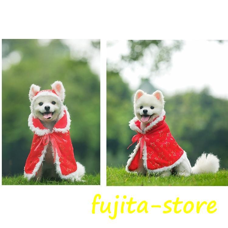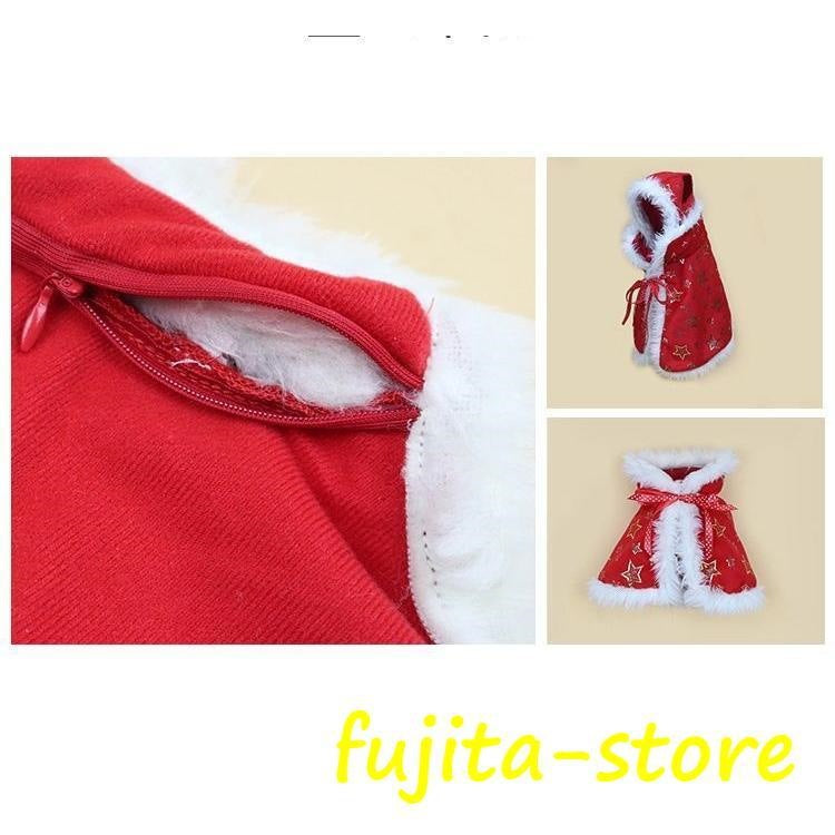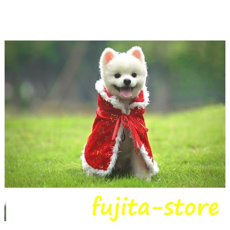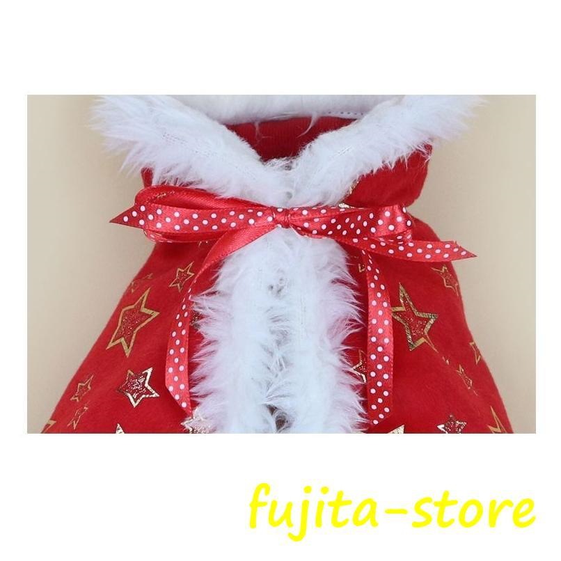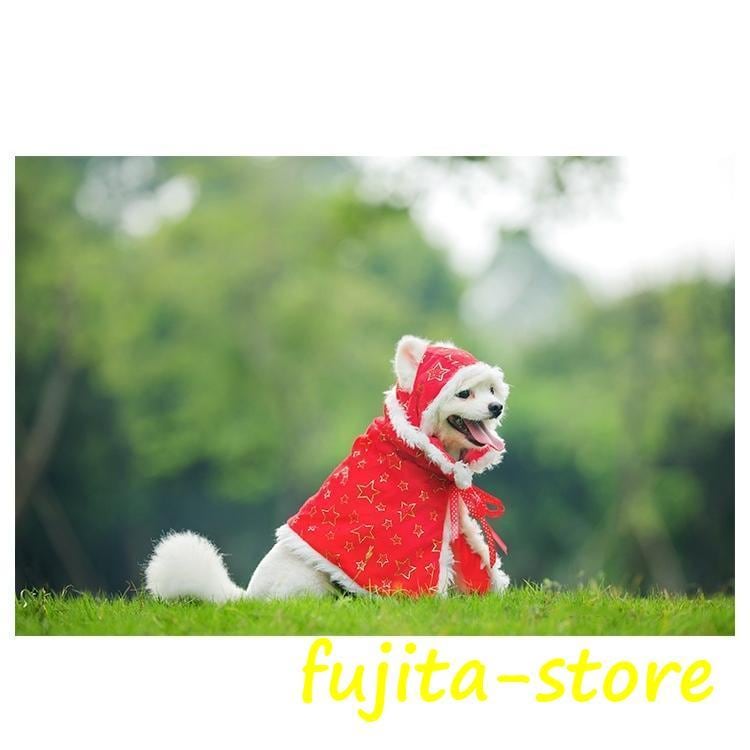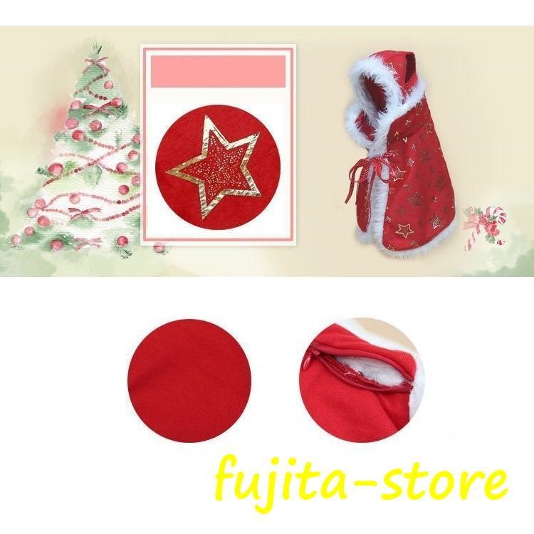 ペットウェア コート ドッグ キャット ポンチョ フード付き 耳出し リード穴 裏起毛 ボア マント 星柄 ファー サンタ クリスマス レッド 犬 猫