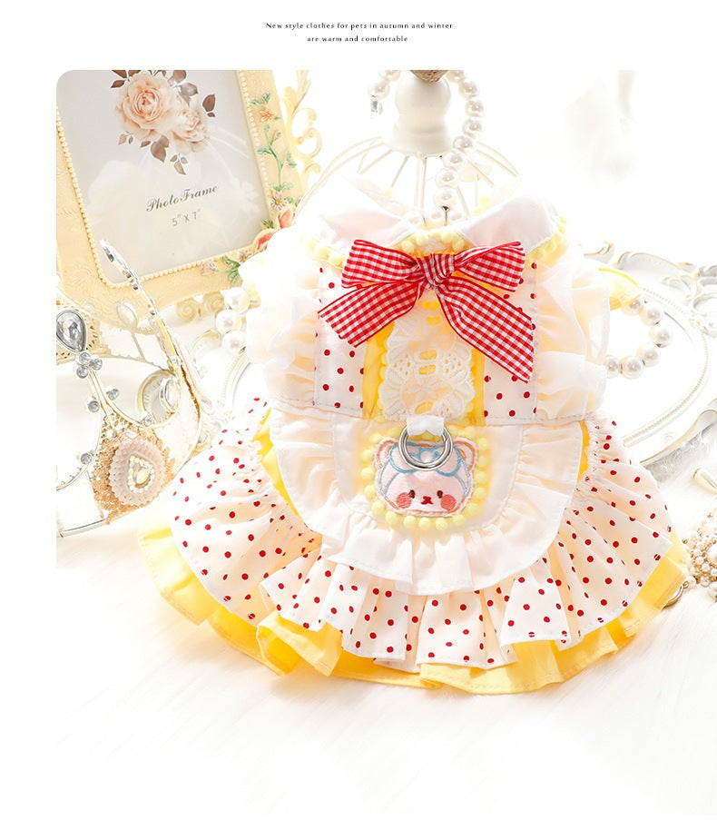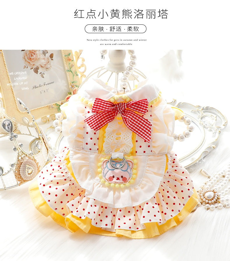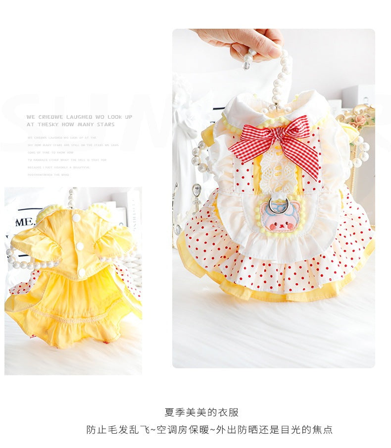 ペットウェア 猫犬服 春夏秋新金薄手の金ガス透過性涼しい犬の服かわいい猫の新生ミルク犬のミルク猫のプリンセスワンピース子犬マシュマロ小型犬ペットテディ服キャミソールロリータの猫犬服
