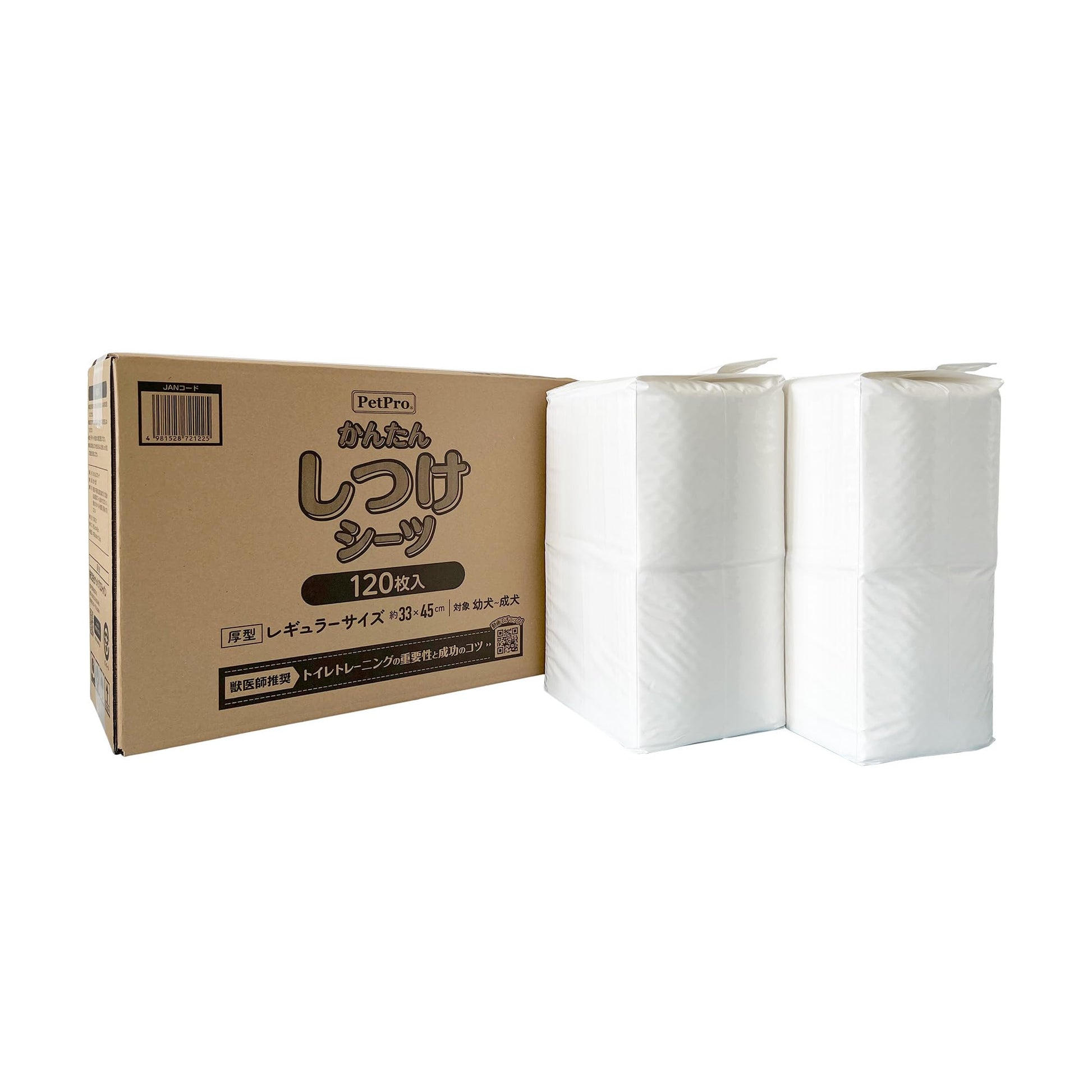 ペットプロ かんたんしつけシーツレギュラー120枚 犬 ペットシーツトイレトレーニング 獣医師推奨トイレしつけ動画付 誘引剤 大容量 無香料 約33×45cm