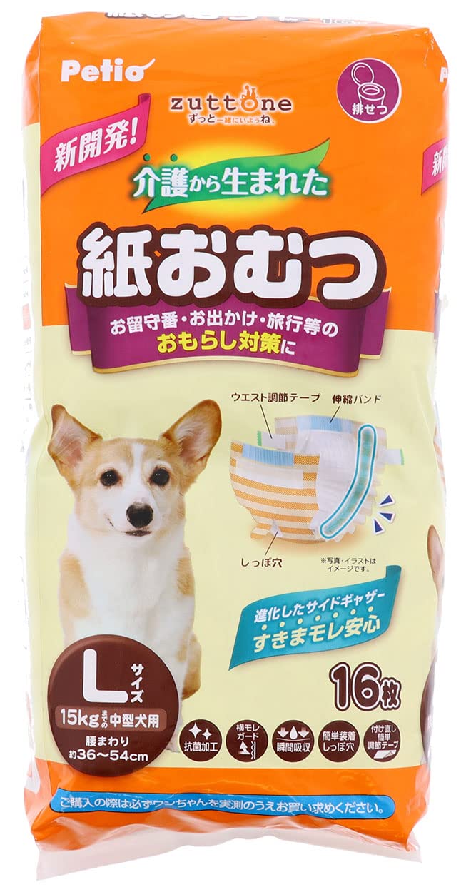 ペティオ (Petio) 犬用オムツ zuttone 介護から生まれた紙おむつ L 16枚 ホワイト