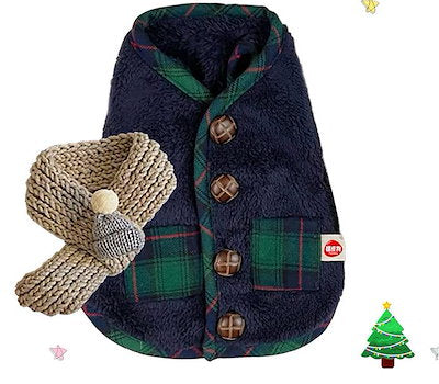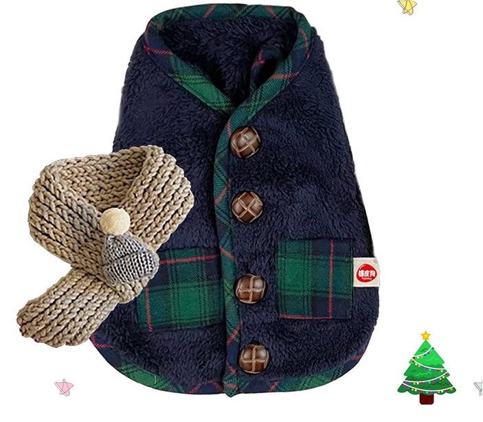メガ割ペット服 クリスマス 可愛い ペット服 パーカー 服 犬服 ベスト コート マフラー付き 袖なし 猫服 ふわふわ 暖かい ドッグウェア コスム 保温 防寒 小中型犬 お散歩お出かけ服