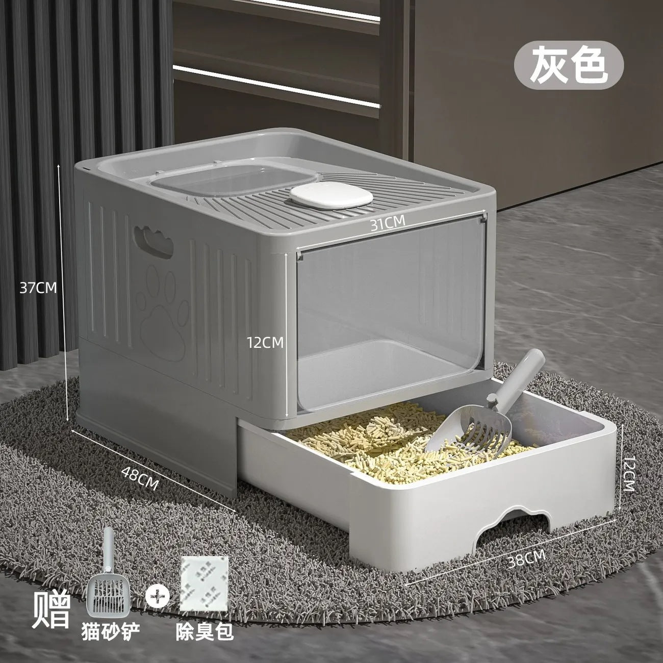 メガ割完全に密閉された引き出し式の猫用トイレ 猫用品1246