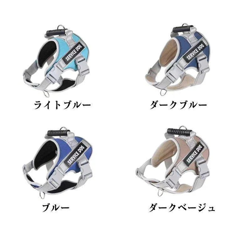 メガ割 犬用ハーネスハンドル付パワーハーネス胴輪反射テープ超小型犬-大型犬飛び出し防止簡単装着ハンドルハーネスソフト衝撃吸収大型犬中