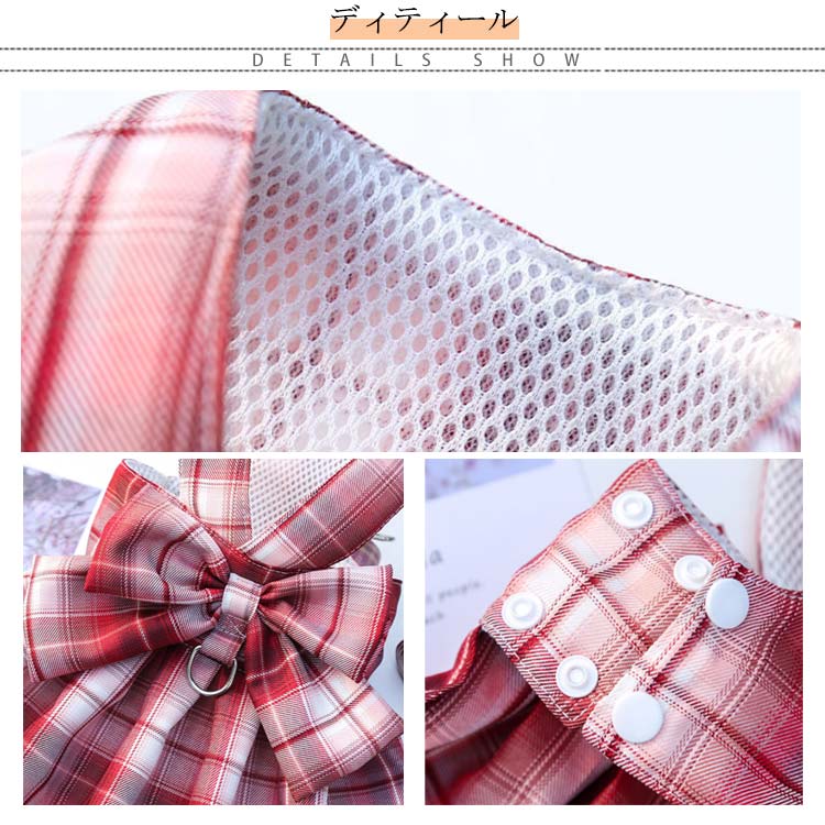 とてもおしゃれで可愛いハーネスリードセットです。 ペットのお散歩も楽しくなりそう。 リボン付き、おしゃれなチェックワンピースです。 小型犬、中型犬、猫、ウサギなど小さなペット用ペットウエアです。 軽量で通気性良くワンちゃんも快適につけられます。 普段のお散歩から旅行、いつも一緒にいられる必須アイテムです。 装着簡単でお散歩やお出かけ準備出来、写真撮影などにもおすすめです。 | |
