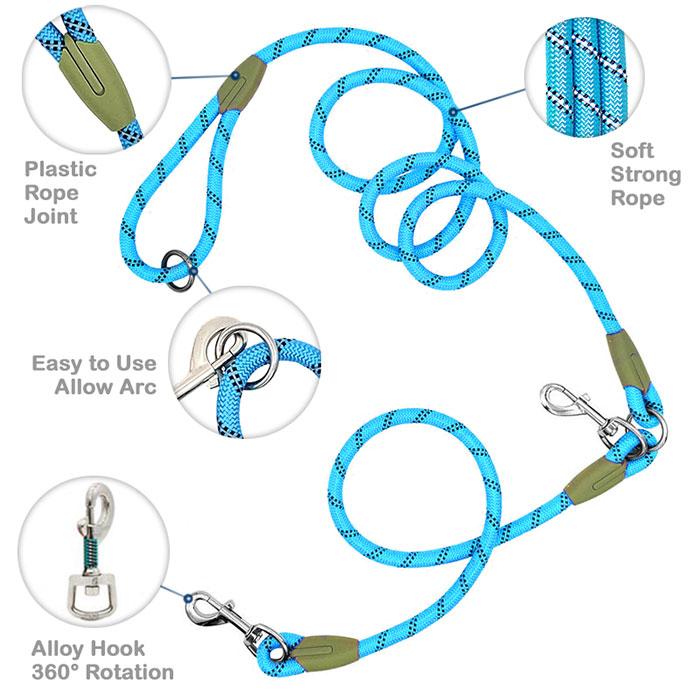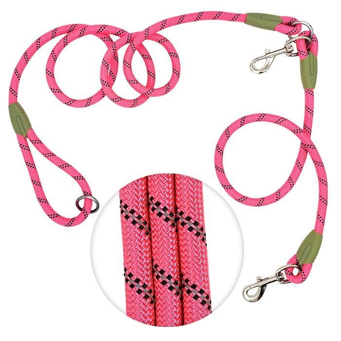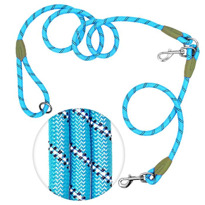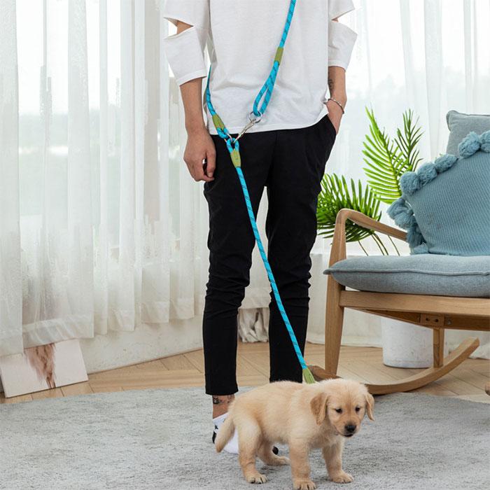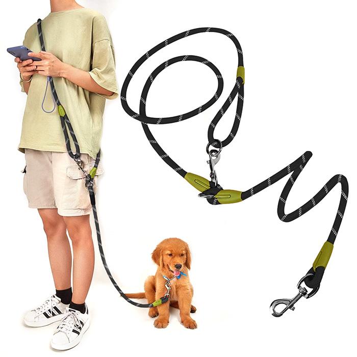 リード ラウンドロープ 二頭引きリード 肩掛け ペットリーシュ ジョギングリード ロープ 大型犬 ショルダーリード 中型犬 220cm 犬リード たすき掛け 犬用