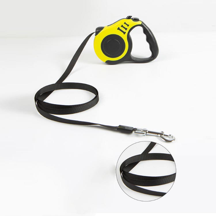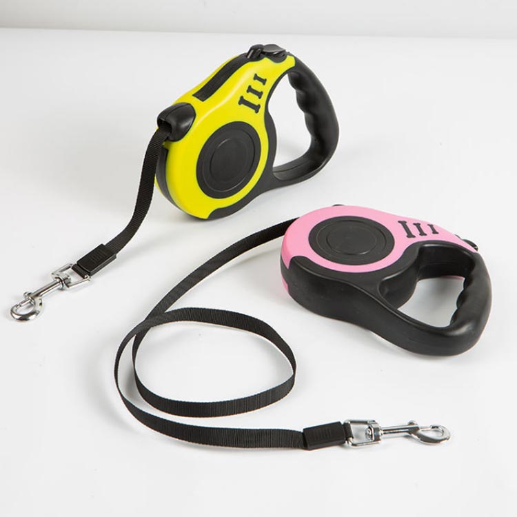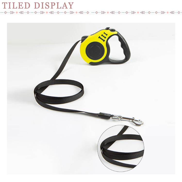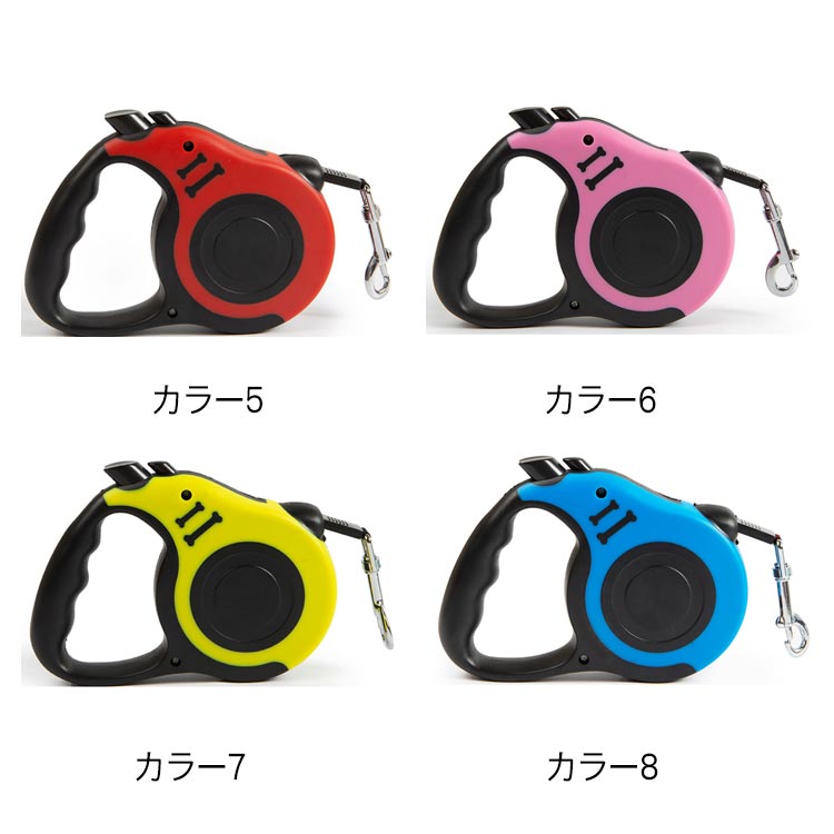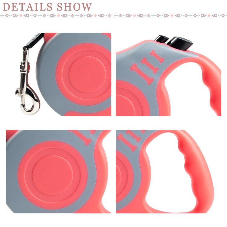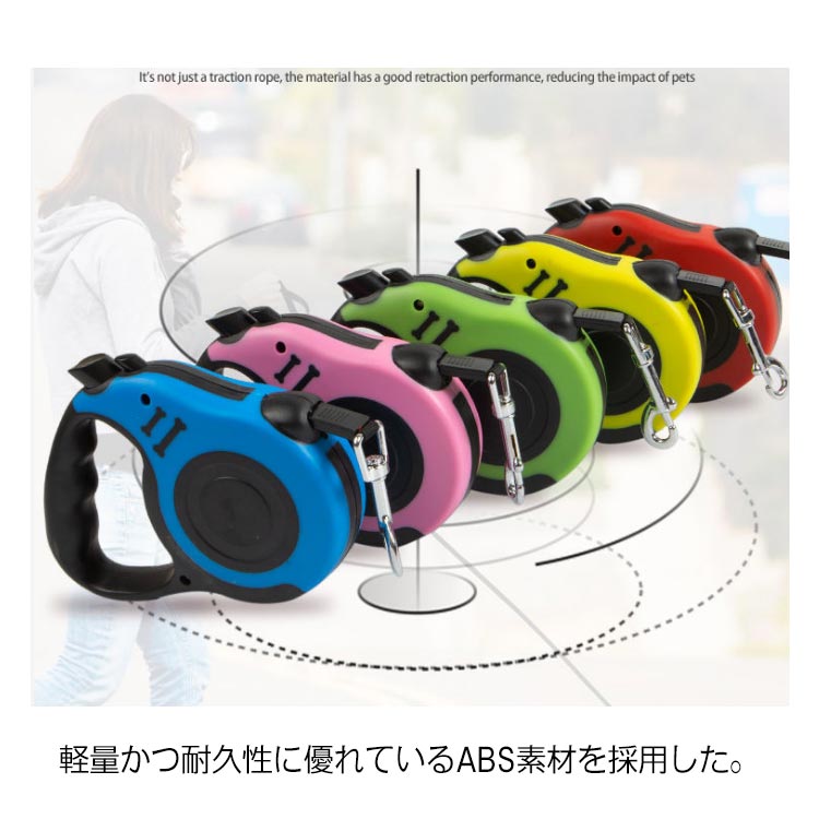 紐の長さを自由自在に調節できるリードです。軽量かつ耐久性に優れているABS素材を採用した。リードにポリエステル製の平ベルトを採用しており、絡みにくく扱い易い。長さ5mなので、愛犬を思いっきり走らせてくれます。スイッチにロックをかけることで、紐を一定の長さに固定させられる。家にいる犬は運動不足でストレスを解消するとことができます。