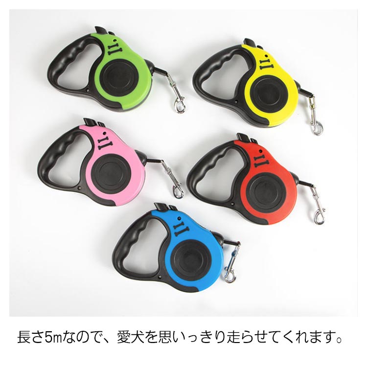 リード 小型犬 中型犬 猫 犬用 長さ5m 伸縮リード テープタイプ コードタイプ 頑丈 ロングリード 伸びるリード 巻き取り お散歩 コンパクト 軽量 送料無料