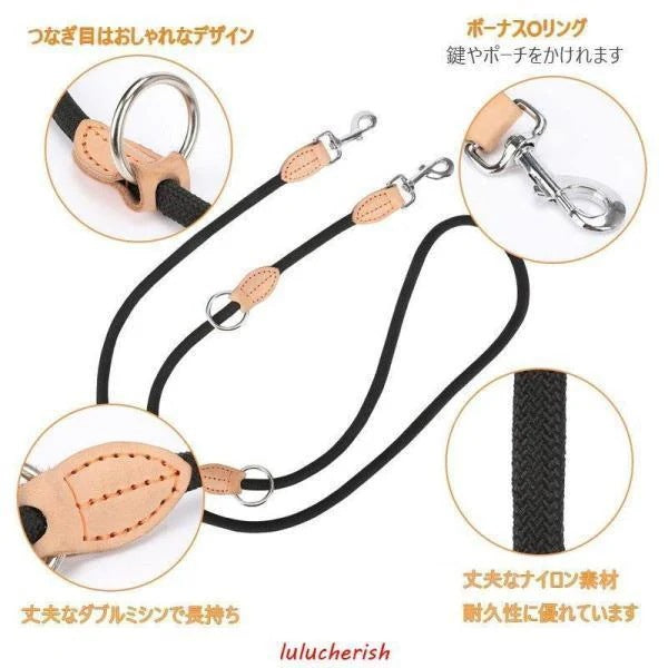 ・【多機能リード】3箇所に付いている金属フックを使用して、ショートリード、ウエストリード、肩掛け、2頭用、柵や柱へ固定など、様々な方法でご使用いただけます。