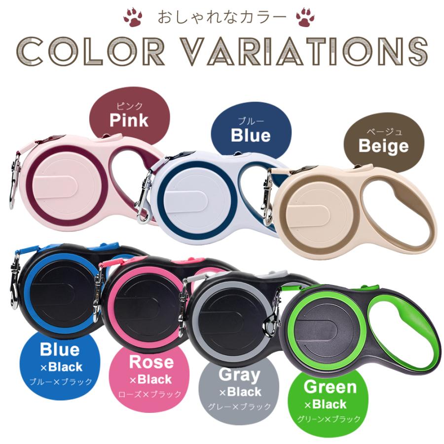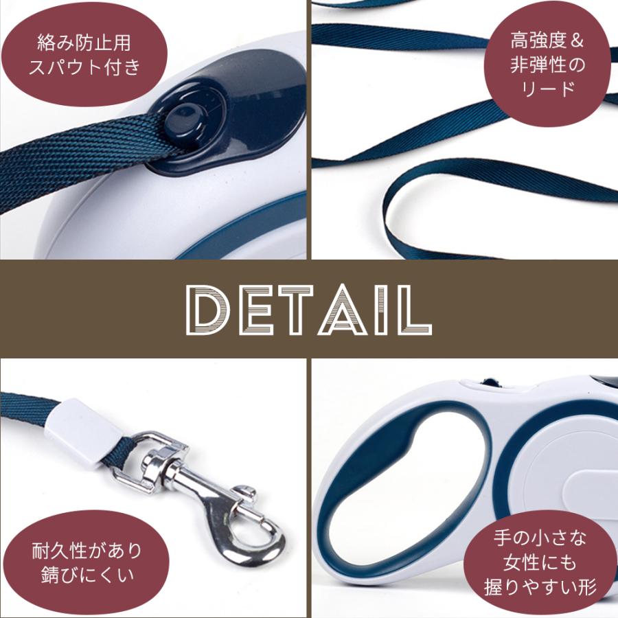 商品名:犬 リード 伸縮 コンパクト おしゃれ 長い 5m 犬用 小型犬 中型犬 軽量 コンパクト かわいい