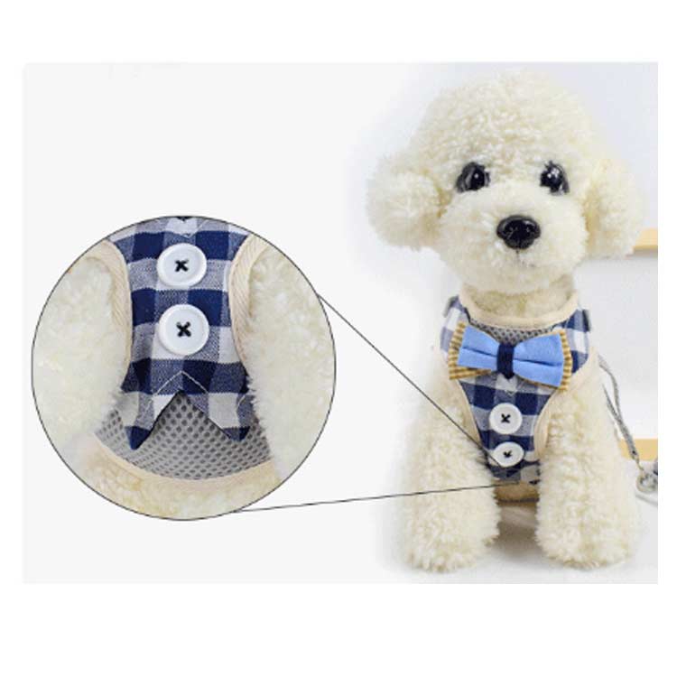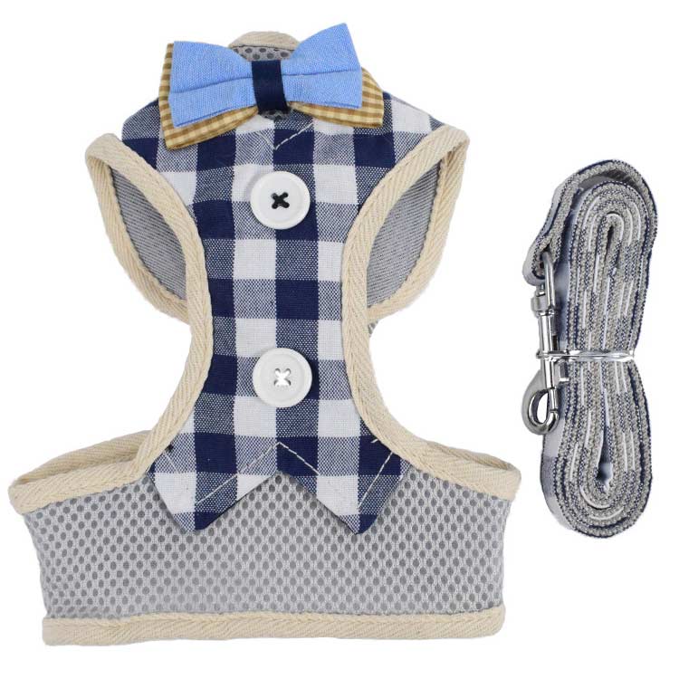 優しくわんちゃんの体を包み込むベストタイプのハーネス。ソフトな素材で首に負担がかかりにくい、ハーネスとリードのセットです。裏地はメッシュ素材で通気性バツグン。爽やかなつけ心地で、真夏のお散歩も快適です。装着も簡単でワンちゃんもストレスなく付けられます。毎日のお散歩が待ち遠しくなります♪背中のクリップでサイズ調整も簡単。リードも強度の高いポリエステル+コットン素材で引っ張り癖のあるわんちゃんでも安心です。コットン生地仕様で皮膚の弱い子にも安心です。品質も可愛さもこだわった愛犬用ハーネス&リードセットです。