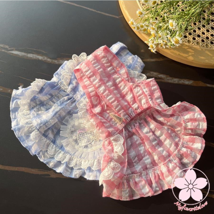 万能流行感 ぺット 服 安い 犬 春 夏 チェック フリル キャミソール かわいい 可愛い ハイブランド 猫 ドッグ ウェア