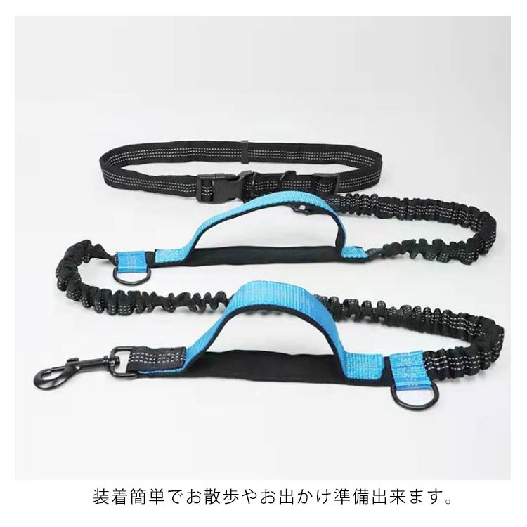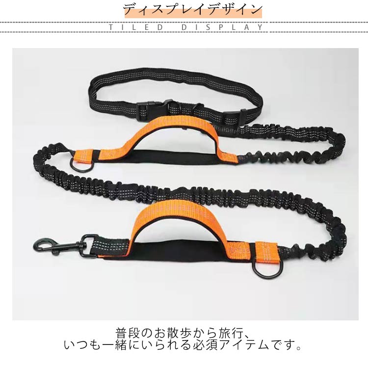 両手解放!ウェストリード リード 犬 大型犬 外れない 防止 中型犬 ハンズフリー 大型犬 ダブルリード 小型犬 伸縮可能 スポーツ 延長 ハンドル付き 光反射 夜安全